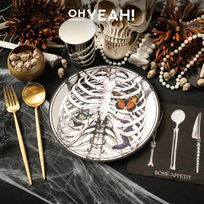 The Skulls Collection from Oh Yeah! presents a striking black-and-white line with elegant touches of colour, where bones and skulls take centre stage in every print. Plates, cups, napkins, tablecloths and glasses come together for an unforgettable feast from beyond the grave, where every last detail counts.