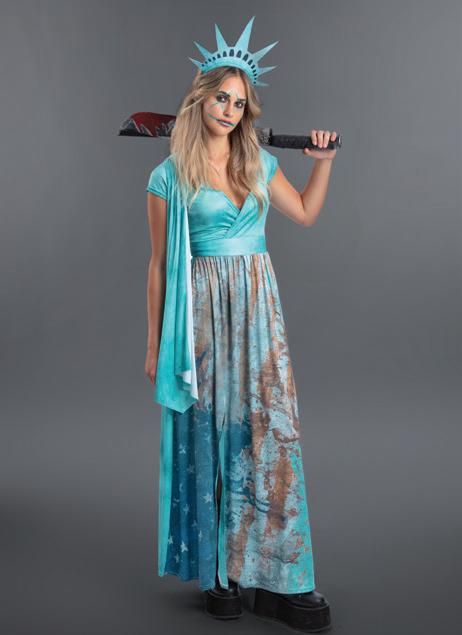 The new Liberty Death costume from Smiffys puts a Halloween twist on the American icon. Featuring a printed dress and co-ordinating headpiece for a creepy, iconic Halloween costume.