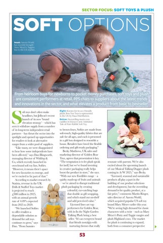 and we’re excited to be part of that,” commented Dan Illingworth, managing director of Widdop & Co, which recently launched its own-brand soft toy line, Softies. There’s a growing demand for plush at retail; according to market research by Statista, revenue in the UK Dolls & Stuffed Toys market is projected to reach £880 million in 2025, with an annual growth rate of 4.09% expected from 2025 to 2029. It’s a category brimming with potential, and we find out how soft toy and plush suppliers are rising to the challenge on page 53.