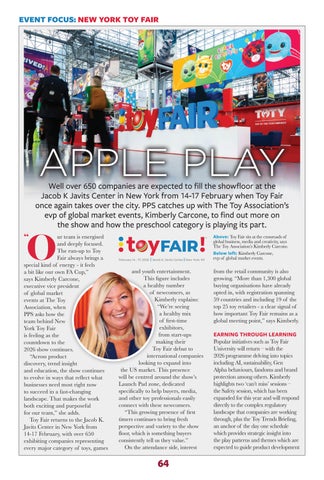 from the retail community is also growing. “More than 1,300 global buying organisations have already opted in, with registration spanning 59 countries and including 19 of the top 25 toy retailers - a clear signal of how important Toy Fair remains as a global meeting point,” says Kimberly. EARNING THROUGH LEARNING Popular initiatives such as Toy Fair University will return – with the 2026 programme delving into topics including AI, sustainability, Gen Alpha behaviours, fandoms and brand protection among others. Kimberly highlights two ‘can’t miss’ sessions – the Safety session, which has been expanded for this year and will respond directly to the complex regulatory landscape that companies are working through, plus the Toy Trends Briefing, an anchor of the day one schedule which provides strategic insight into the play patterns and themes which are expected to guide product development