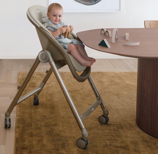 The multifunctional high chair and recliner that stands out for comfort and contemporary design. Approved from birth, the Living high chair features a removable cover, double tray and 360° mobility – perfect for modern living spaces. Thanks to the Comfort Recline system, it adjusts to four positions to suit every moment of the day: upright for meals, slightly reclined to engage in family life, more relaxed for quiet time, and fully reclined for rest. A versatile, stylish companion from day one.
