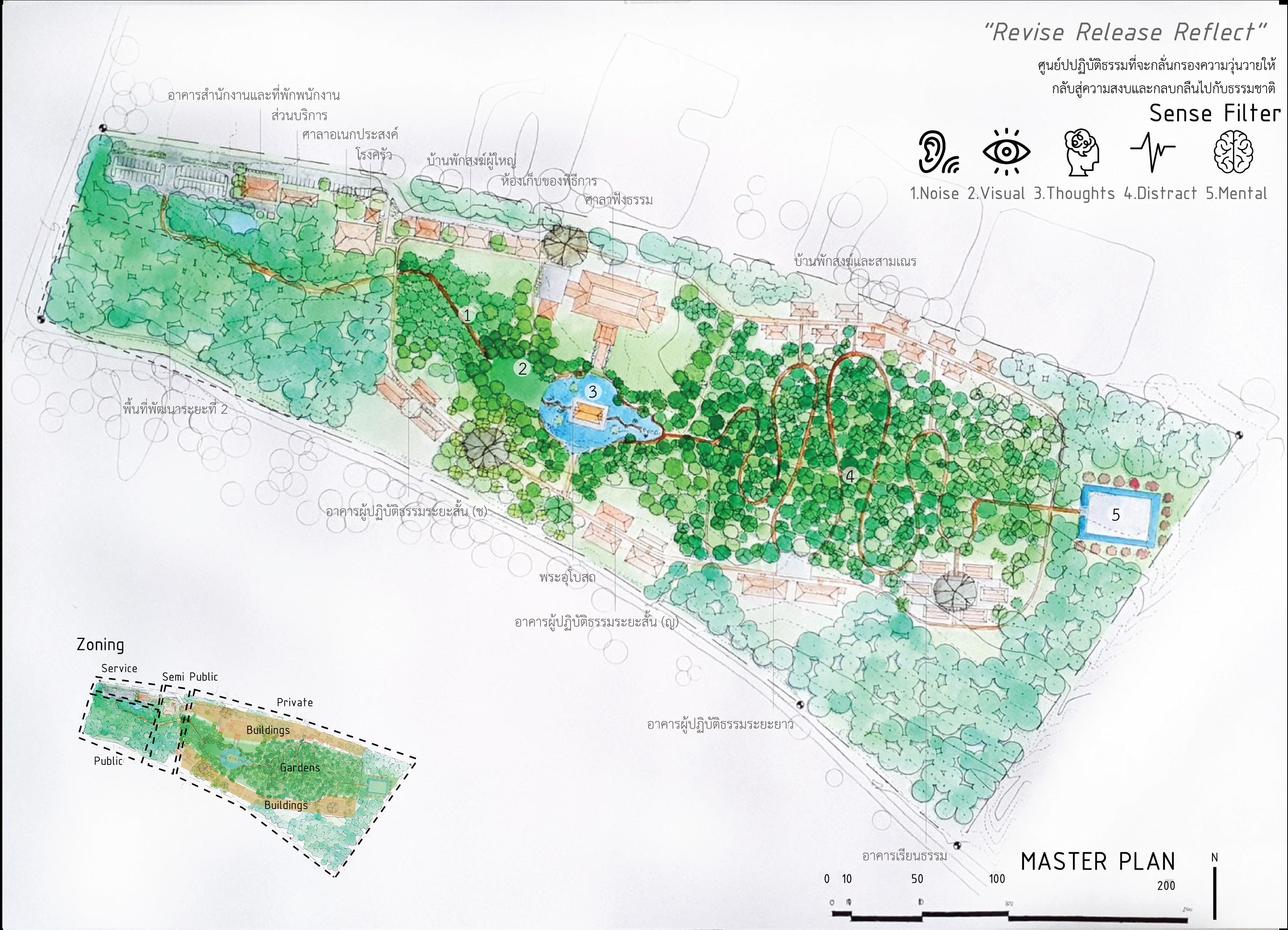 04 Meditation Center Planning Project Location : Project Description : Area : Design Concept : ริมอ่างเก็บนาเขือนแก่งกระจาน จังหวัดเพชีรบร พัฒนาพื นที่บริเวณนีเป็นโรงเรียนบาล สถานที่ ปฏิิบตธ์รรม ซึ่่งมีที่พักสาหรับภิกษุสามเณร รวมถ่งประชีาชีนที่ัวไปผู้�มาปฏิิบตธ์รรม 68 ไร “Filters” - เป็นการกรันกรองผู้คีนที่มาปฏิิบตธ์รรม ด�วยการรับรู�จากประสาที่สัมผู้ัสและพื นที่ที่เปลียนไป ในแต่ละชี่วง Filtration Buddhist Landscape 15