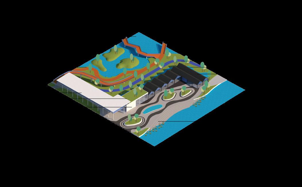 01 Sports and Recreation Center Project Location : Project Description : Area : Design Concept : ถนนพระรามที่ 3 แขวงบางโพงพาง เขตยานนาวา กรุงเที่พมหานคีร ฟื้้นฟืู้และพัฒนาพื นที่ริมนา เพื อการกระตุ�นเศรษฐกิจ การกีฬาและการที่่องเที่ยว และคีุณภาพชีีวิตที่ดีของ เมืองและชีุมชีน 54 ไร ศูนยกีฬาและนันที่นาการที่เน�นไปที่กีฬาแนวExtreme