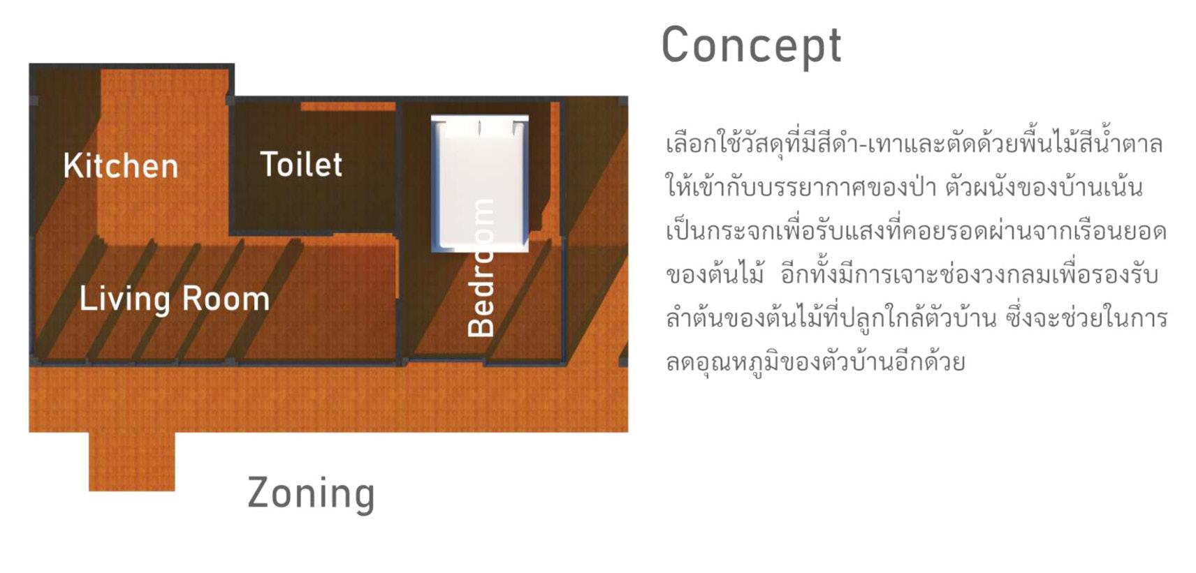06 Smart Home Design Competition Project Location : Project Description : Area : Design Concept :ออกแบบบ�าน Knock Down ภายใต�คีอนเซึ่ปต “บ�านเล็กในเมืองใหญ่่“ 36 ตารางเมตร ใชี�วัสดุที่สีเข�มและกลมกลืนไปกับผู้ืนป่า และดาดฟื้้าที่ รับร่มเงาจากต�นไม�ที่าให�ผู้�อาศัยในบ�านได�ใกล�ชีิดกับ ธ์รรมชีาติมากขีน Florest House 21