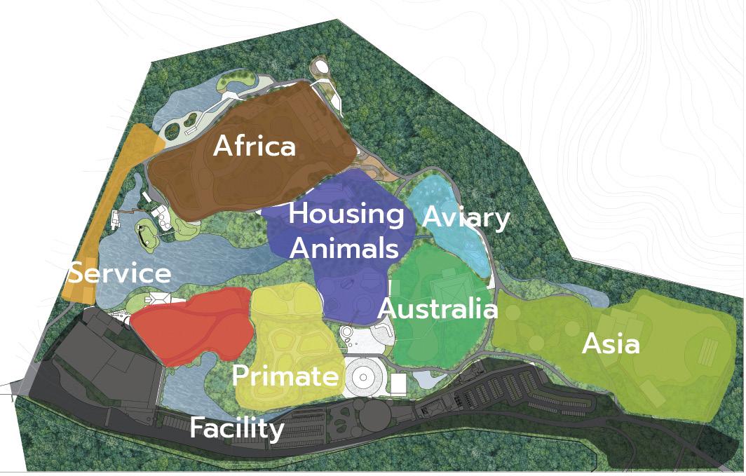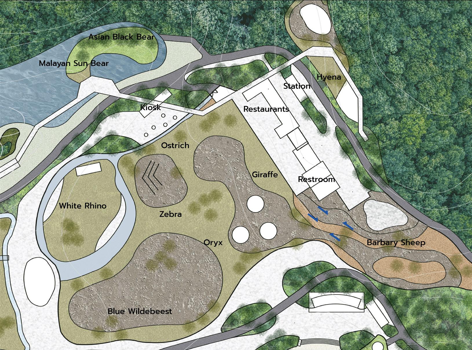 02 Zoo & Theme Park Design Project Location : Project Description : Area : Design Concept : สวนสัตว์เปิดเขาเขียว ตำาบลบางพระ อำาเภอศรีราชีา จังหวัดชีลบร ออกแบบปรับปรุงและฟื้้นฟืู้สวนสัตว์เปิดเขาเขียว 600 ไร เปิดพื นที่ให�สัตว์สามารถเดินได�อย่างอิสระในขอบเขต บริเวณที่มคีวามพอเหมาะและพอด