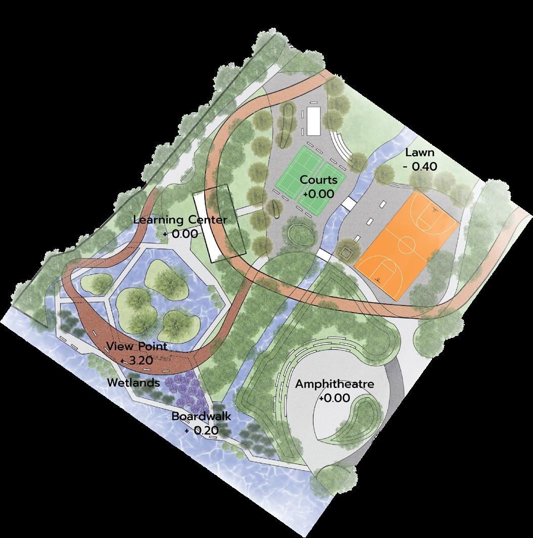 พื นที่พักผู้่อนสาหรับนักปนจักรยานทีุ่กประเภที่สามารถเข�าถ่งได�ง่าย มีโคีรงสร�าง ศาลาขนาดใหญ่่และศาลาขนาดเล็กรองรับ อีกที่ังยังเป็นพื นที่ตังของเลนจักรยาน ับเด็กซึ่่งผู้�ปกคีรองสามารถนังพักและดูแลเด็กได�อย่างสะดวก 0 10 20 40 70 04 N