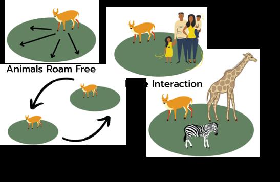 สภาพที่อยู่อาศัยให�ใกล�เคีียงกับธ์รรมชีาติเดิมของ สัตว์ที่มคีวามหลากหลายของชีนิดพันธ์ุ์กระจายใน พื นที่เดียวกัน ซึ่่งเพิ มคีวามแปลกใหม่และไมจาเจให� กับผู้�เข�าชีม