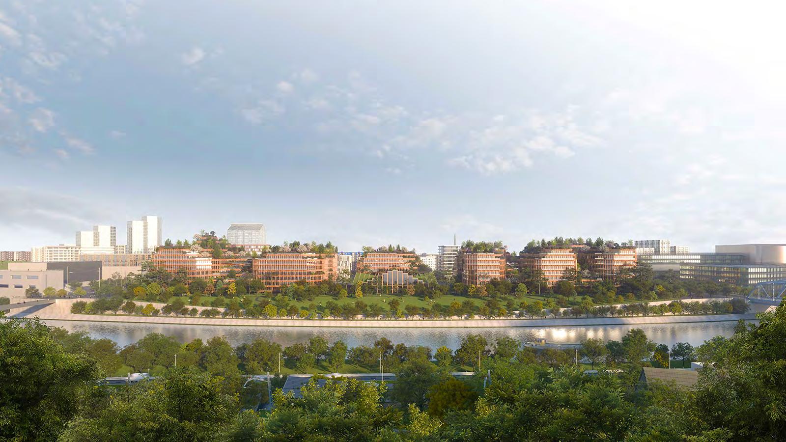 Significant multi-functional project on the Island of Ile Seguin in Paris, France. This successful competition win on the site of the former Renault factory encompasses offices, commercial spaces, a food court, and sports facilities.