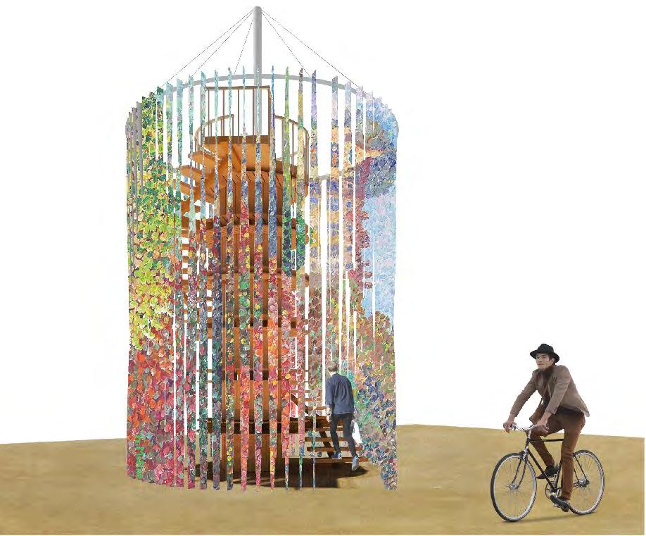 A temporary watchtower situated at the new railway zone of Delft, constructed from the historic cable reels that show the characterful historical development of the city of Delft.