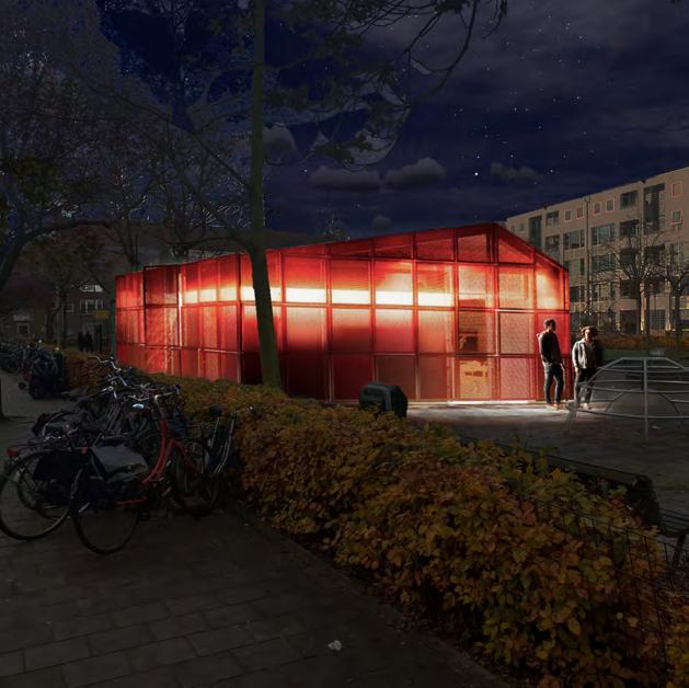 A robust design for a playground and community house in an underserved neighborhood in Amsterdam. The design prioritizes social safety by incorporating subtle nighttime lighting and maintaining transparency from the street to the square.