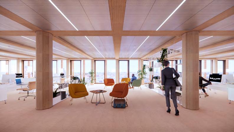 The two wooden towers not only symbolize innovative and sustainable design but also embody the connection between the city and the harbor of Rotterdam. At ground level, the towers seamlessly intertwine, utilizing characteristic re-used corten steel sheet piles that rise from the Dutch ground to enclose the refined and pixelated indoor passage. This passage beautifully showcases the character of the makers district in a layered and transparent way, promoting interaction among individuals.