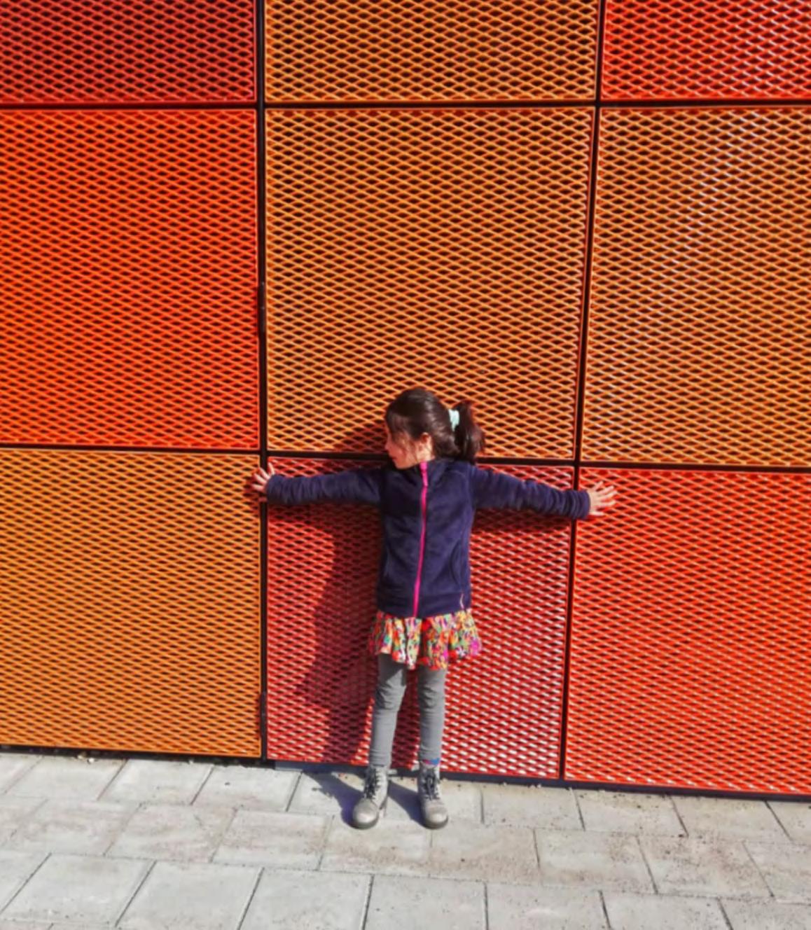 The vibrant colors of the expanded metal refer to the differentiation in brick colors in the neighbourhood.