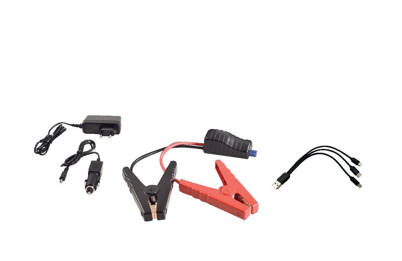 • Kein Voraufladen der Starthilfe nötig – lädt sich über die Restenergie der Fahrzeugbatterie