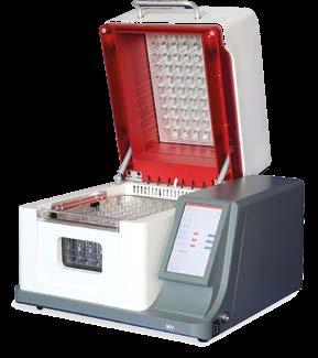 shaker niet volledig waterpas of raakt deze door afwijkende vibraties uit balans, dan wordt het toerental automatisch aangepast. De luchtdichte siliconen deurvergrende ling en een hogesnel heidsventilator zorgen voor het behoud van de optimale tempera tuur en een schone cabine. De binnenzijde van de cabine is degelijk uitge voerd met met rvs en corrosiebestendig.