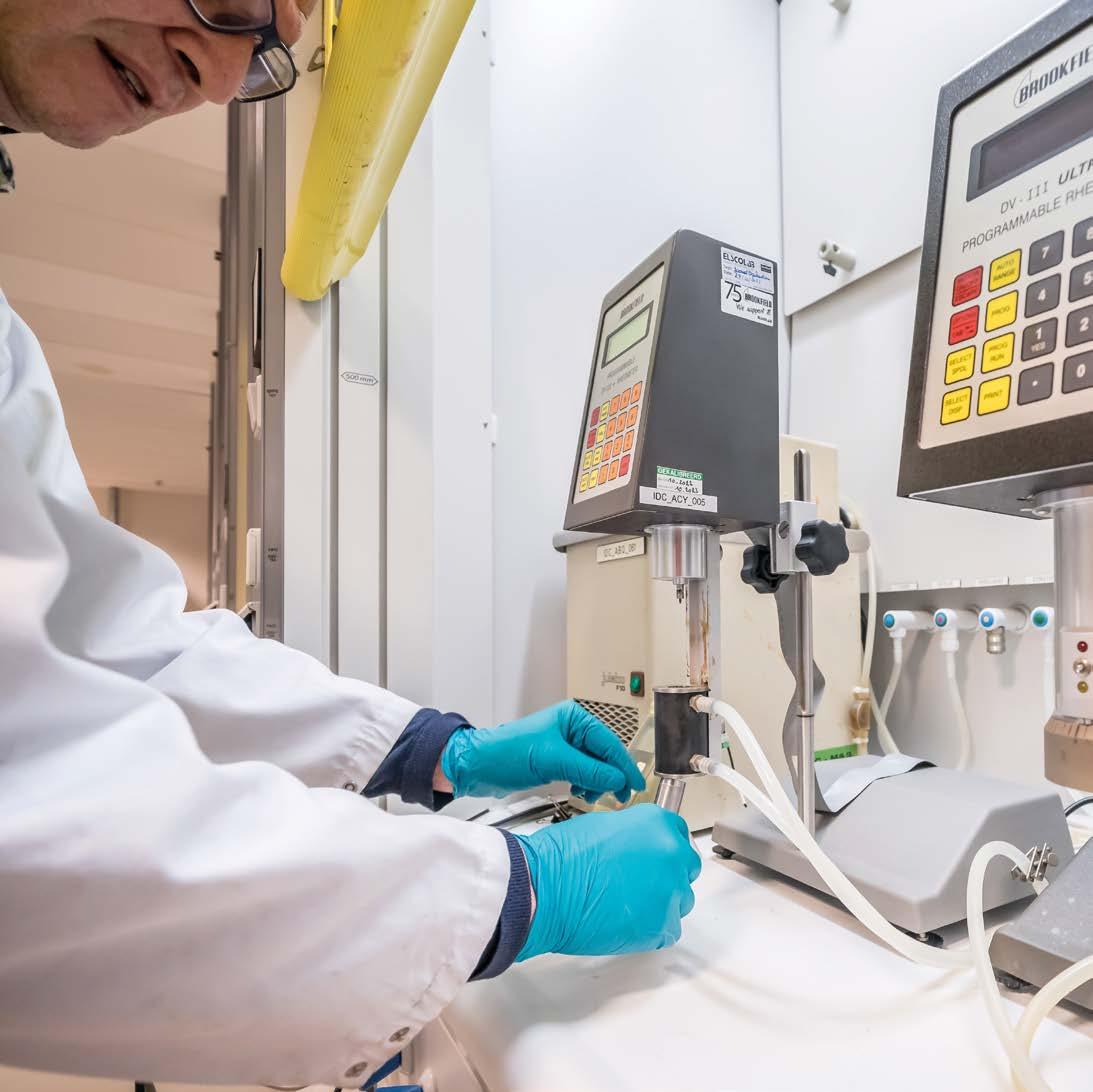 Rheometrische eigenschappen bepalen in het laboratorium van Recticel R&D op de DV-III Utra programmable rheometer van Brookfield. De analyseresultaten lopen automatisch in het LIMSsysteem iLES van iVention dat hier sinds kort operationaal is. (Foto: Marco Vellinga)