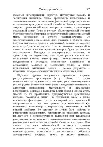 духовной интерпретации) характер. Потребуется помощь и заключения медицины, чтобы предложить необходимые и здравые наставления в отношении физической природы, а также привлечение культуры и знаний индийских йогов в отношении энергии, протекающей через центры, в данном случае через сакральный центр. Точка в поисках сбалансированной позиции будет поставлена благодаря интеллектуальной активности людей мира, работающих в области законотворчества. От многочисленных современных экспериментов в области секса будущее поколение придѐт к равновесной позиции и закрепит весы в требуемом положении. Это не вызывает сомнений и является лишь вопросом времени, которое будет установлено астрологически. Благодаря законотворческому мышлению и адекватному законодательству секс будет рассматриваться как естественная и божественная функция; такое положение будет поддерживаться благодаря правильному воспитанию и образованию молодых и несведущих людей, а также правильными действиями нового – весьма разумного – поколения, которое составляют нынешние младенцы и дети. Обучение дурным сексуальным привычкам, широкое распространение проституции (я употребляю это слово относительно как мужчин, так и женщин), рост гомосексуализма (не его редких физиологических форм и предрасположенности, а следствий извращенной ментальности и нездорового воображения, которые в настоящее время лежат в основе столь многих из его проявлений), предрассудочное христианское наследие ―комплекса вины‖ в отношении секса, а также нездоровые физические тела с чрезмерной или подавленной сексуальностью – всѐ это привело род человеческий 6]к нынешнему хаотичному и неразумному отношению к этой важной проблеме. Еѐ решение не может быть найдено в религиозных предписаниях, основанных на отживших теориях; не даст его и физиологическое подавление или легализация распущенности; не поможет и законодательство, вдохновленное различными школами мысли в какой-либо нации или стране. Оно явится следствием объединѐнной активности духовно ориентированного сознания, здравомыслящего отношения, интеллектуального восприятия и настоятельного требования эволюционного процесса. Ничто не может помешать