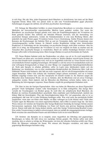 in sich birgt. Die alte Sitte, jeden Gegenstand durch Räuchern zu desinfizieren, hat einen auf der Hand liegenden Grund. Diese Sitte war jedoch nicht so sehr eine Vorsichtsmaßnahme gegen physische Schichtungen als gegen die subtilen, mit all ihren psychischen Auswirkungen. 222. Solange die Menschheit fortfährt, in einem körperlichen Bewußtsein zu verweilen, können die Methoden der konventionellen experimentellen Medizin kaum geändert werden. Nur wenn das Bewußtsein zur psychischen Energie gelenkt wird, kann der Empfindungslosigkeit der Vivisektion ein Ende gemacht werden. Das Arbeiten mit lebenden Pflanzen einerseits, und die Anwendung von psychischer Energie andererseits, werden die Gedankentendenz in eine neue Richtung führen; aber jedenfalls hat jeder Protest gegen Vivisektion bereits Unsere Zustimmung. Solche Proteste deuten eine Kenntnis der Erscheinungen der Subtilen Welt an und ein Verständnis dafür, daß Vivisektionen neue Ansteckungsquellen werden können. In Zukunft werden Krankheiten infolge einer hinreichenden Prophylaxe, in Verbindung mit der Anwendung von psychischer Energie, nicht mehr existieren. Aber bis dahin ist es nötig, der Grausamkeit der Vivisektion so weit wie möglich ein Ende zu machen und die Tatsachen über psychische Energie zu wiederholen. Durch ein solches beständiges Erinnern wird die Energie selbst mehr in Erscheinung treten. Denn feuriges Denken ist auch ein Entzünden der Fackeln. 223. Neues Denken bedeutet nicht das Niederreißen von allem, was alt ist. Es wird tatsächlich der beste Freund von allem sein, was bereits entdeckt worden ist. Solches Denken verwirft keine Formel, die nur aus dem Grunde nicht verstanden wird, weil sie im Augenblick nicht klar ist. Unser Freund wird eine unverständliche Formel sorgfältig beiseitelegen. Oft handelt es sich bei etwas Unverständlichem nicht um eine verborgene Errungenschaft, es hängt von einer Menge von vergänglichen Spracheigentümlichkeiten ab. Nicht jede Sprache ist erhalten geblieben; selbst im Laufe eines Jahrhunderts ändert sich die Bedeutung von Ausdrücken, was zu einer zunehmenden Kompliziertheit der Denkweise führt. Laßt uns fließendes Wasser nicht bedauern, aber laßt uns nicht vergessen, daß wir alte Errungenschaften mit neuen Augen betrachten. Selbst viele isolierte alte Ausdrücke mögen seltsam erscheinen, weil sie in fremde Dialekte eingefügt worden sind. und ihre Aussprache oft entstellt worden ist. Im Altertum sangen die Menschen diese bedeutsamen Worte, um sie zu behalten, aber die Rhythmen sind als etwas Unnötiges aufgegeben worden. Doch dadurch, daß die Menschen den Rhythmus verloren haben, haben sie die Bedeutung der Schwingungen vergessen. Neues Denken vergißt die grundlegenden Gedanken nicht. 224. Güte ist eine der feurigen Eigenschaften. Aber was haben die Menschen aus dieser Eigenschaft gemacht? Nicht Schlappheit sondern volle Gerechtigkeit ist in Güte einbegriffen. Das feurige Herz versteht die Unzulässigkeit von Bosheit genau. Es weiß über die schöpferische Kraft Bescheid, die Bosheit als wertlose Zweckdienlichkeit ausschließt. Güte empfindet auch Zielbereitschaft, nämlich das höhere Maß der Gerechtigkeit. Über den Gerechtigkeitssinn haben Wir viel gesprochen, aber er ist so grundlegend, daß man ihn in jeder Erklärung bestätigen sollte. Was wird sonst das persönliche Gefühl ausgleichen, wenn man von hinter einer Maske von Blut verborgen ins Licht blicken muß? Nicht ohne Ursache sagen die Menschen von einem ungerechten Richter, daß er Blut in seinem Auge hat. Auf diese Weise müssen wir inmitten der Gespräche über feurige Reaktionen beständig die feurigen Ströme unserer Nervenzentren regulieren. Jede Erwähnung von Feuer ruft bereits eine gewisse Spannung desselben hervor. Darum muß jeder der feurig denken möchte, auch über feurige Verantwortung Bescheid wissen. Eine solche Verantwortung ist äußerst schwerwiegend, denn sie umfaßt die entgegengesetztesten Anfänge. Doch zwischen den unterirdischen Feuern und dem höheren Licht ist ein weiter Bereich! 225. Inmitten -des Kampfes ist es möglich, einen Augenblick der Erholung und gegenseitigen Beziehungen zu haben. Ihr habt etwas wie stachelige Ströme gespürt. Die Ströme selbst sind nicht stachelig, aber es scheint so infolge des Widerstandes, mit dem die irdischen Schichten erfüllt sind. Diese Pfeile der Dämonen verbergen die Sonne. Wir müssen alle Energien verstärken, und daher sind gegenseitige Beziehungen besonders nötig.
