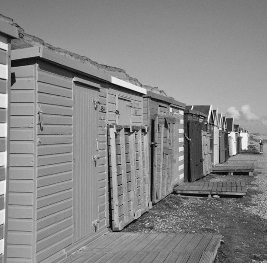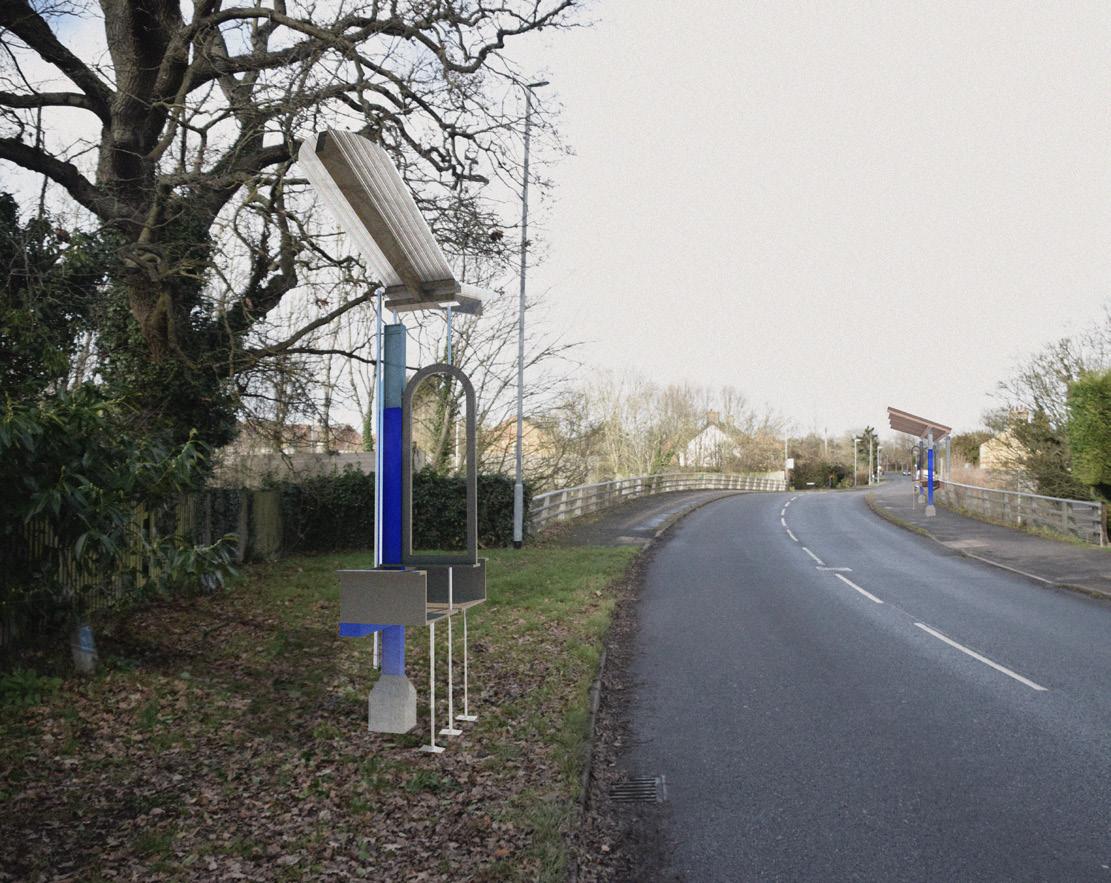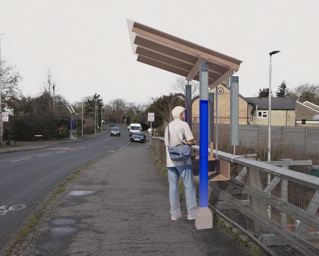 A material language of brightly coloured plastic accents provide a visual cue. Timber verticals reference previous interventions along route. Roughcast render finish hints at vernacular of Barton-on-Sea.