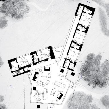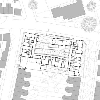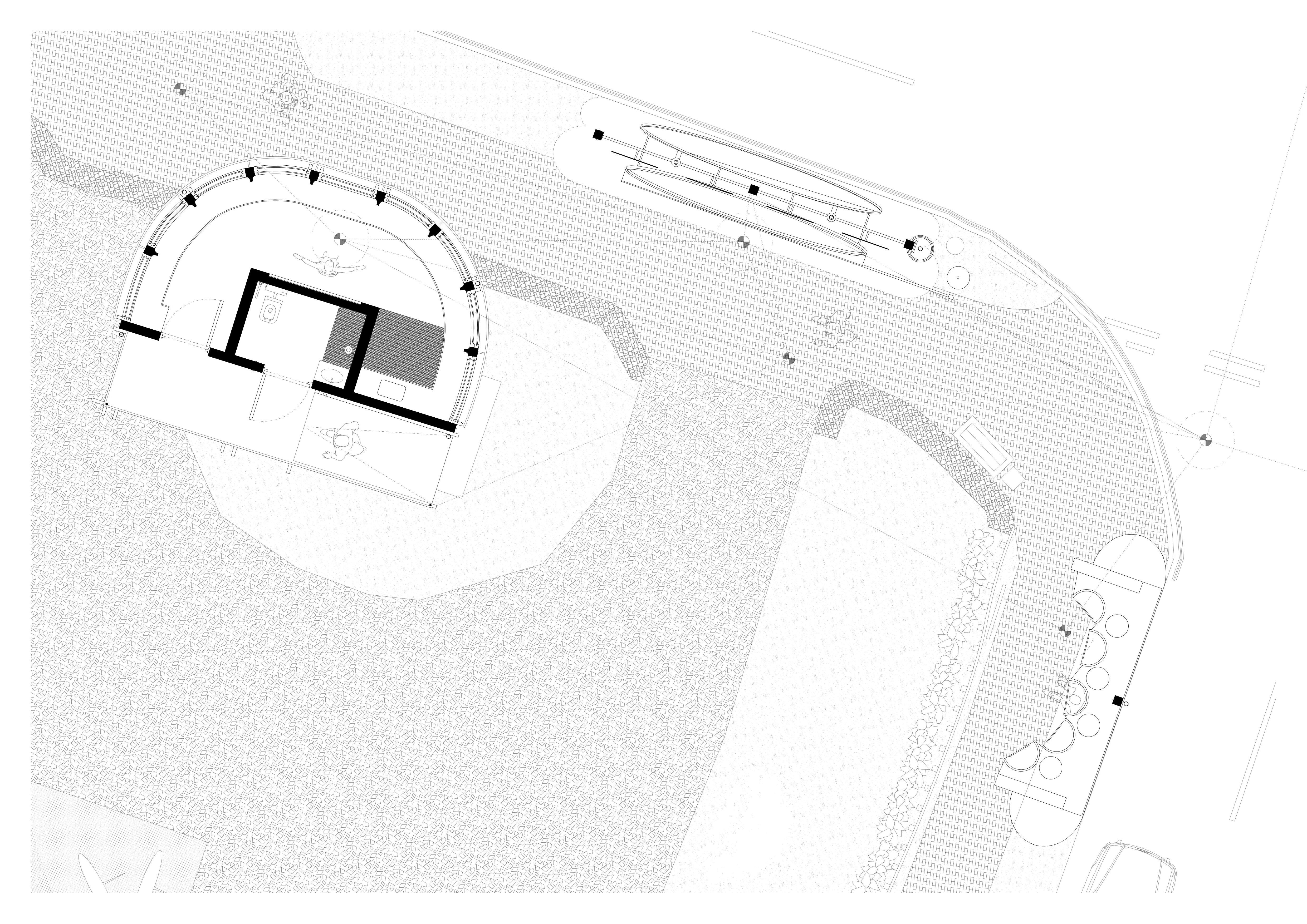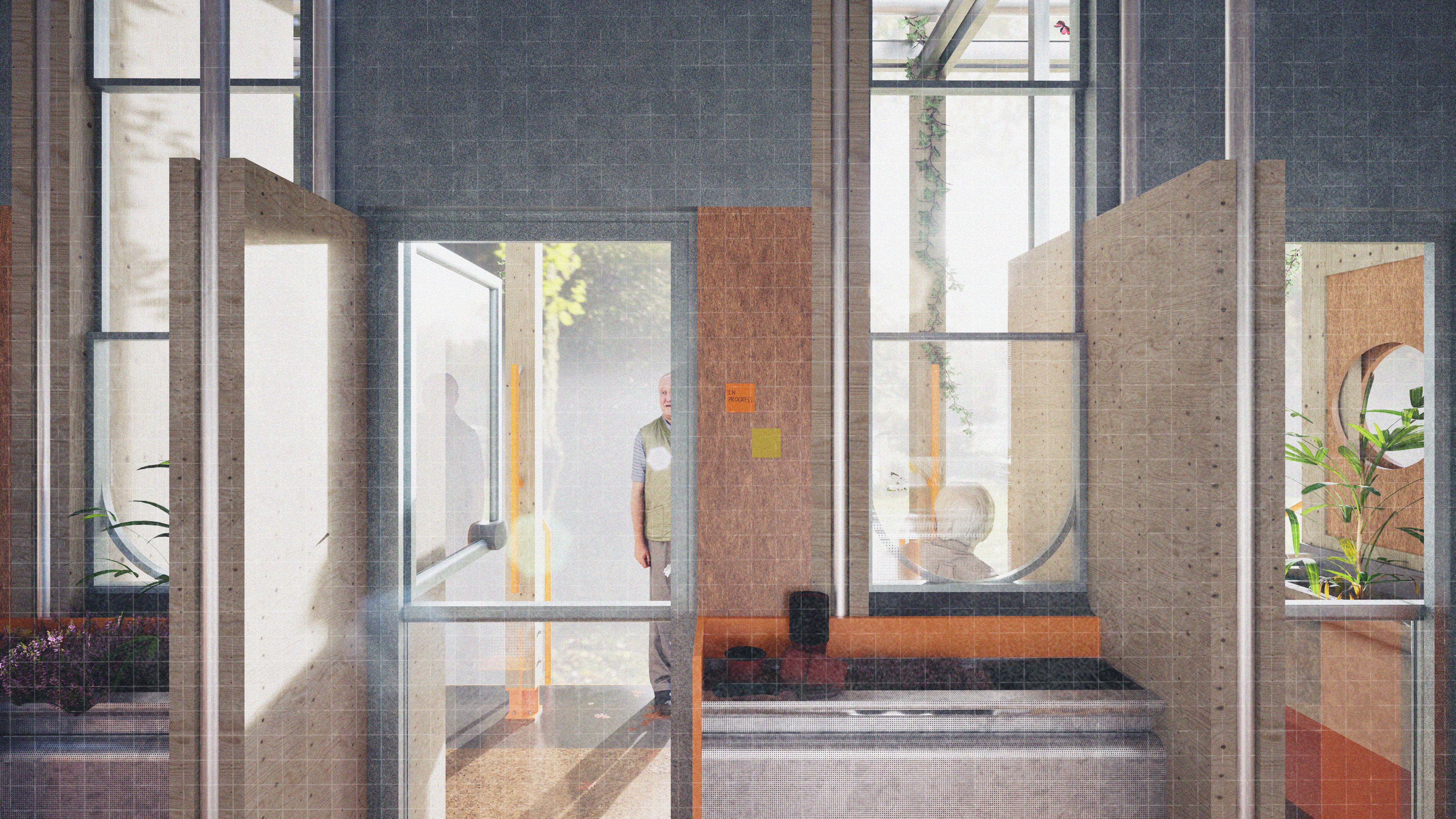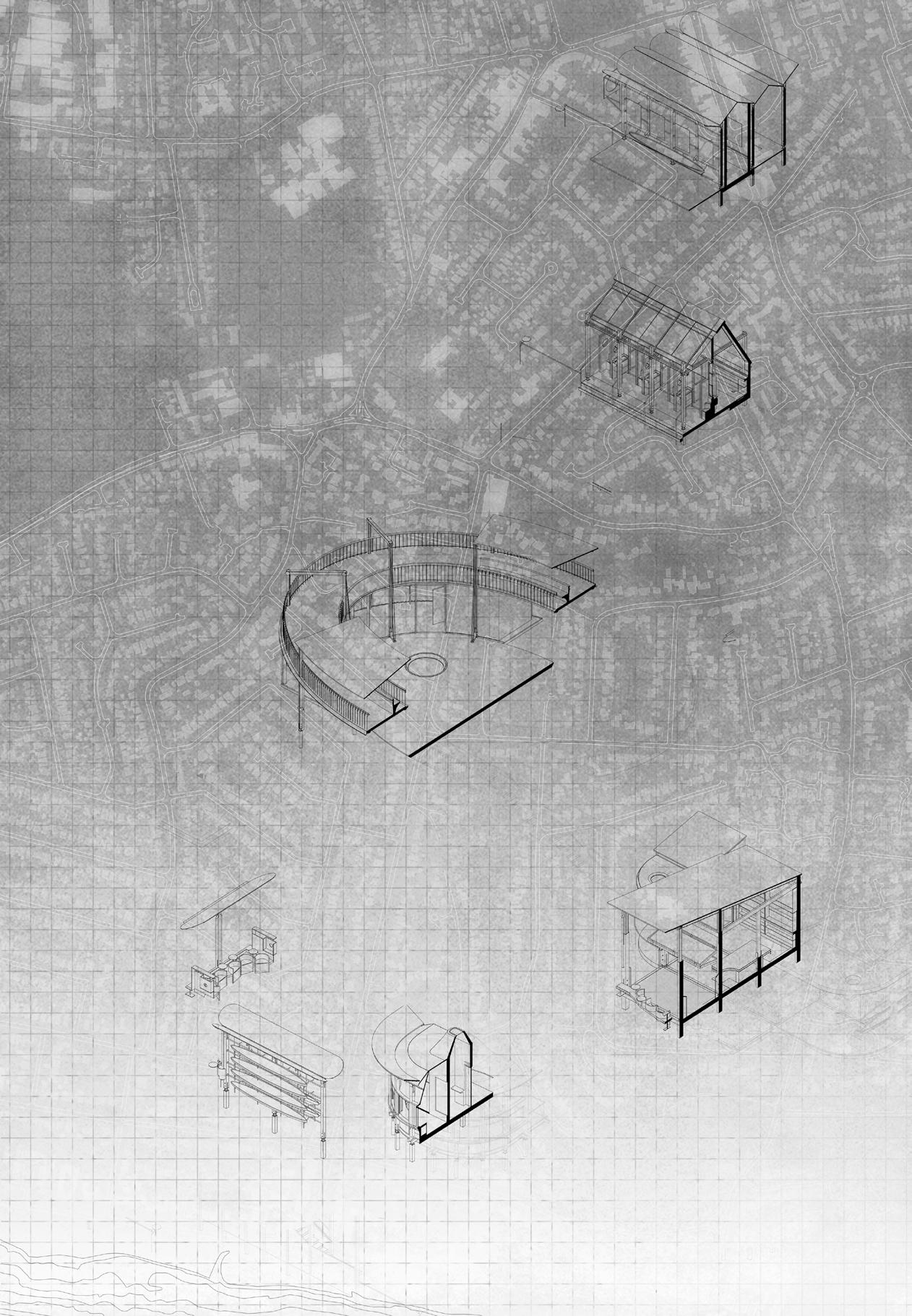 The intervention occupies a public space of land yet straddles a private care home. It provides a public learning space and greenhouse for the community, with the WC being accessible by anybody. It gives private space for dementia residents yet offers public amenity.