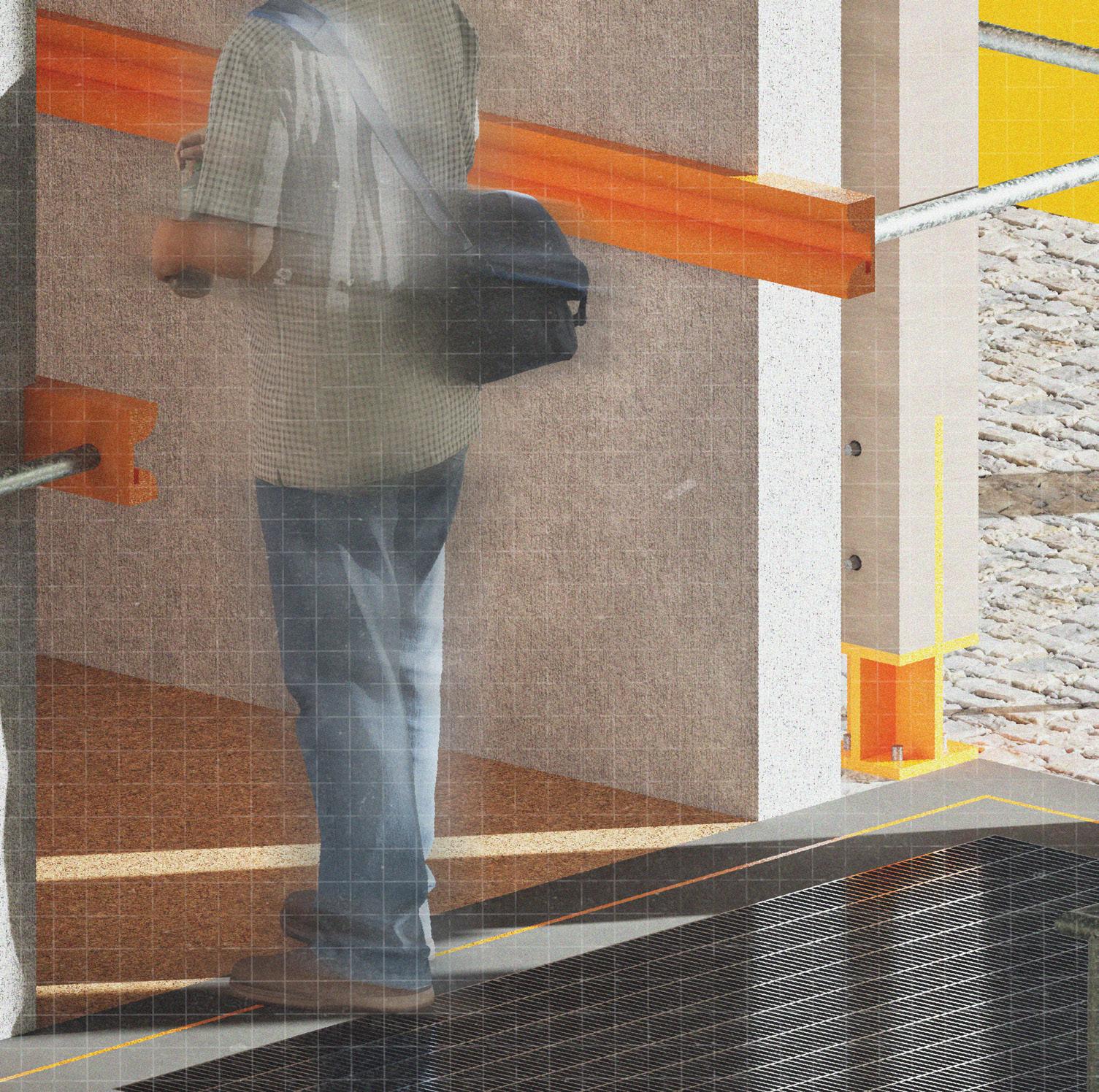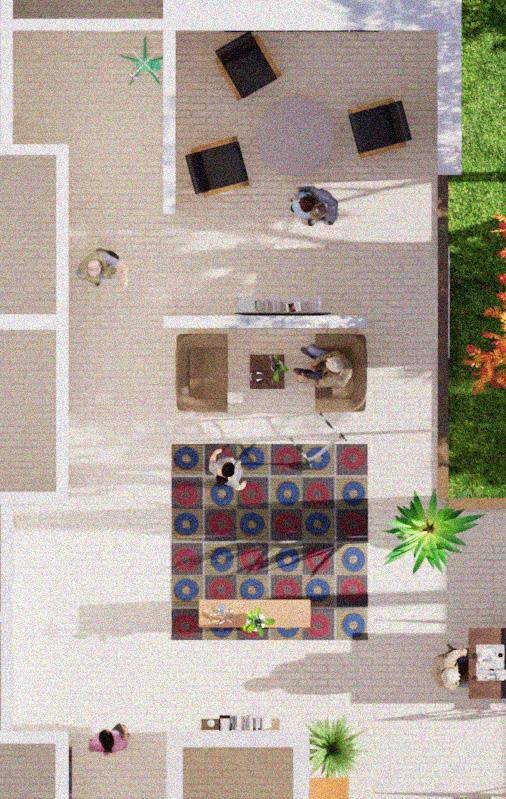 3. PUBLIC INTEGRATION The intervention occupies a public strip whilst parasitically linking to a private domain of an elderly community member. It provides a public kiosk open to all who walk by, increasing interaction. The WC is accessible to anybody.