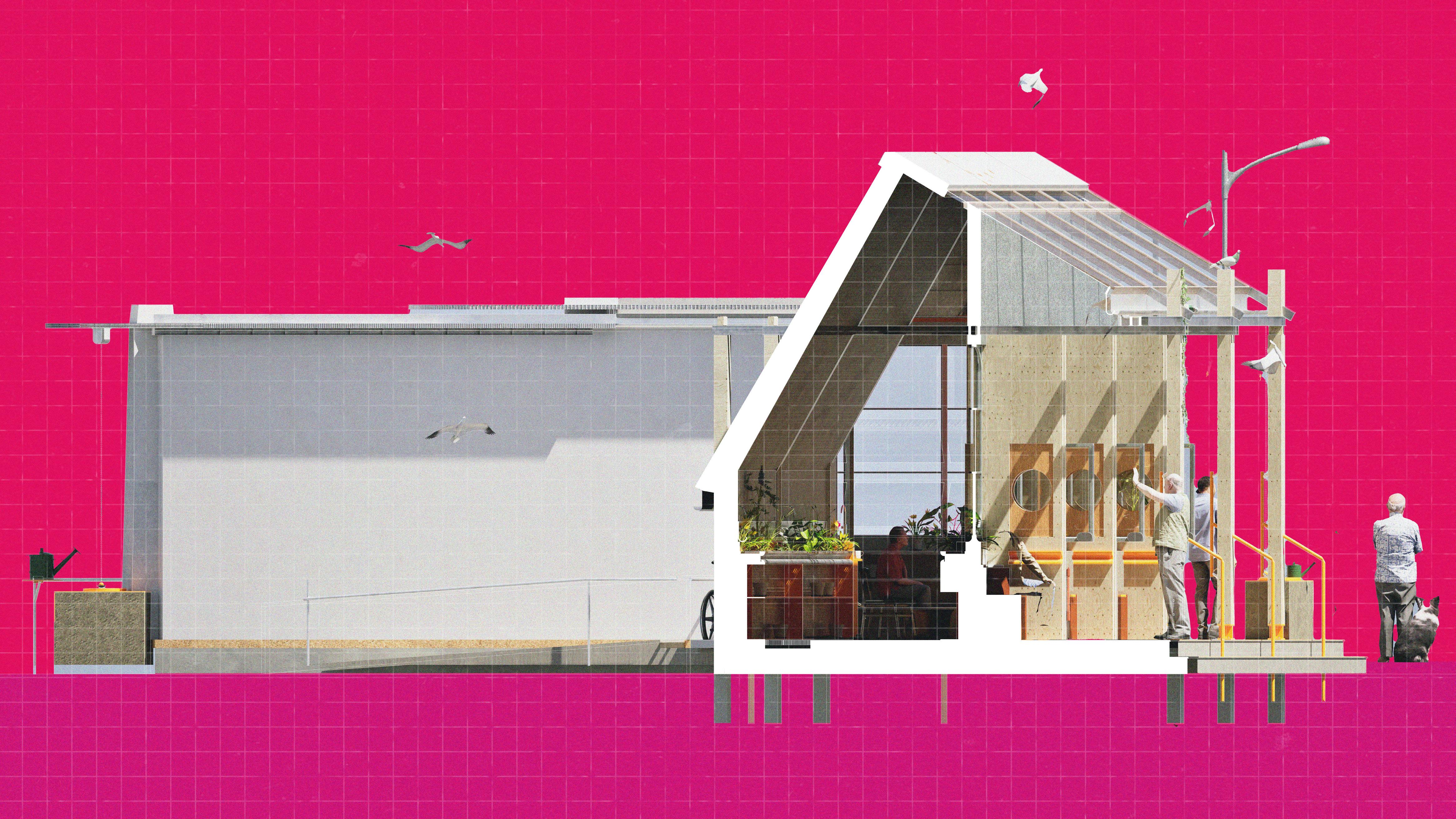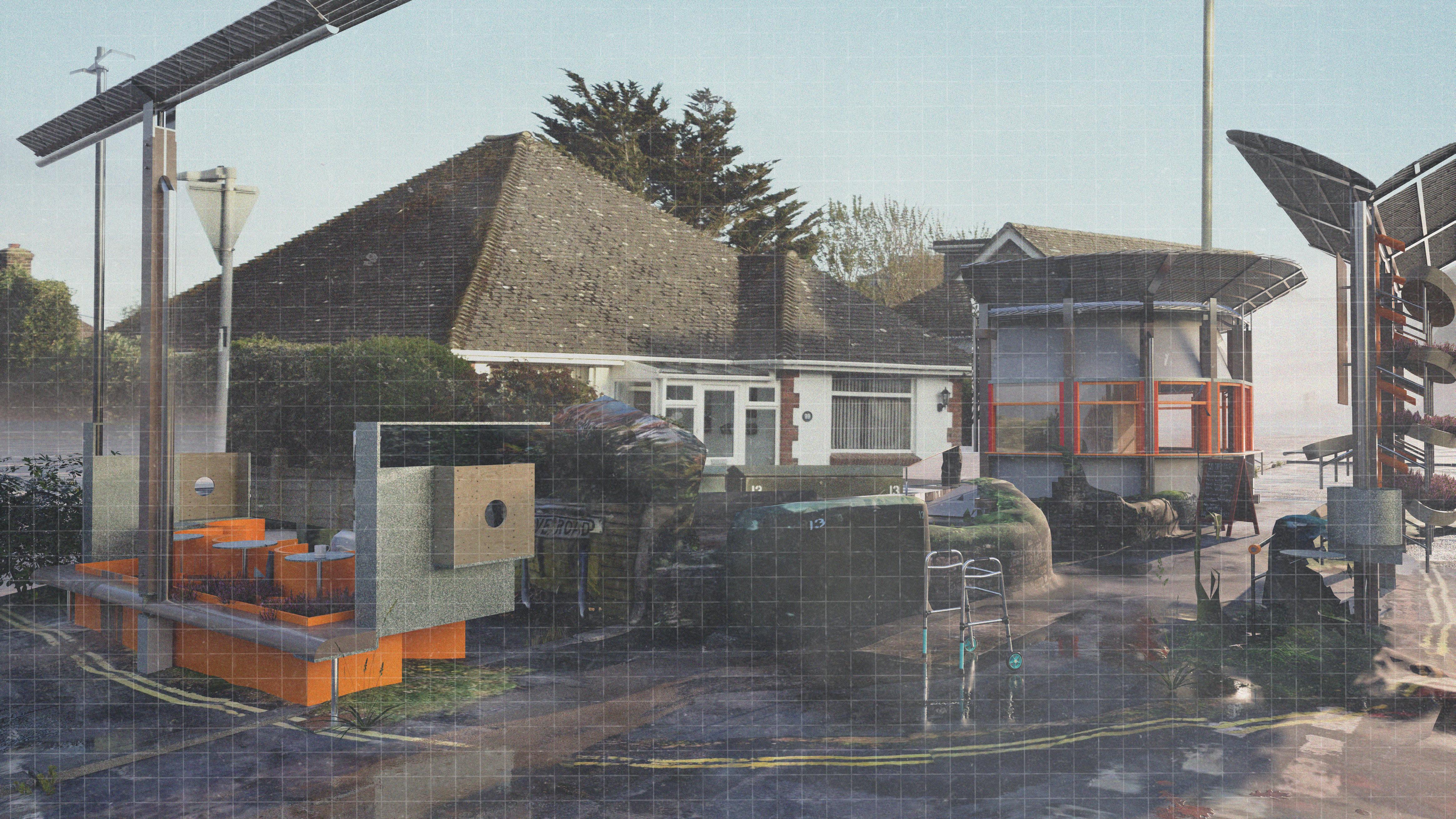 A material language of brightly coloured plastic accents provide a visual cue to the use of the intervention. Walls finished in roughcast render hint to vernacular elements of Barton-on-Sea. Metal bracing on external elements gives reference to medical apparatus such as zimmerframes.