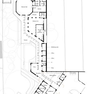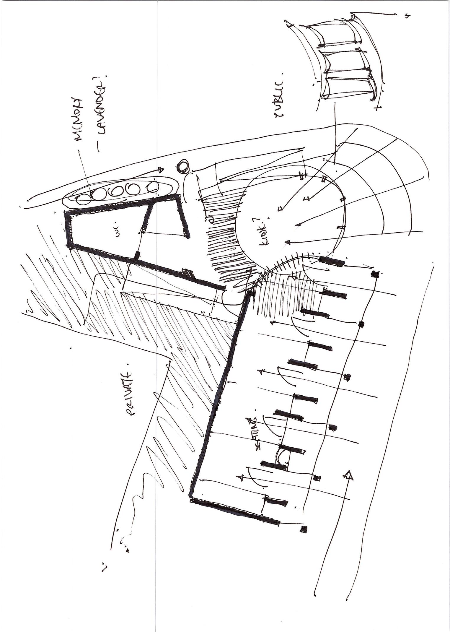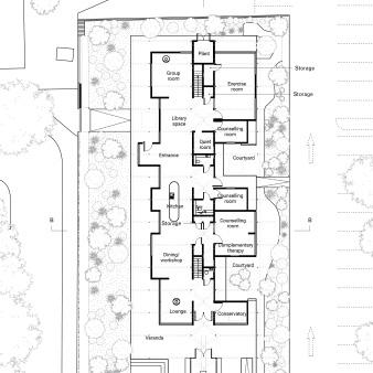 The programme will be open to the garden on one side, will have a sheltered bench for rest or conversation, rainwater collection and softer natural materials, such as timber, as it is away from the sea air.