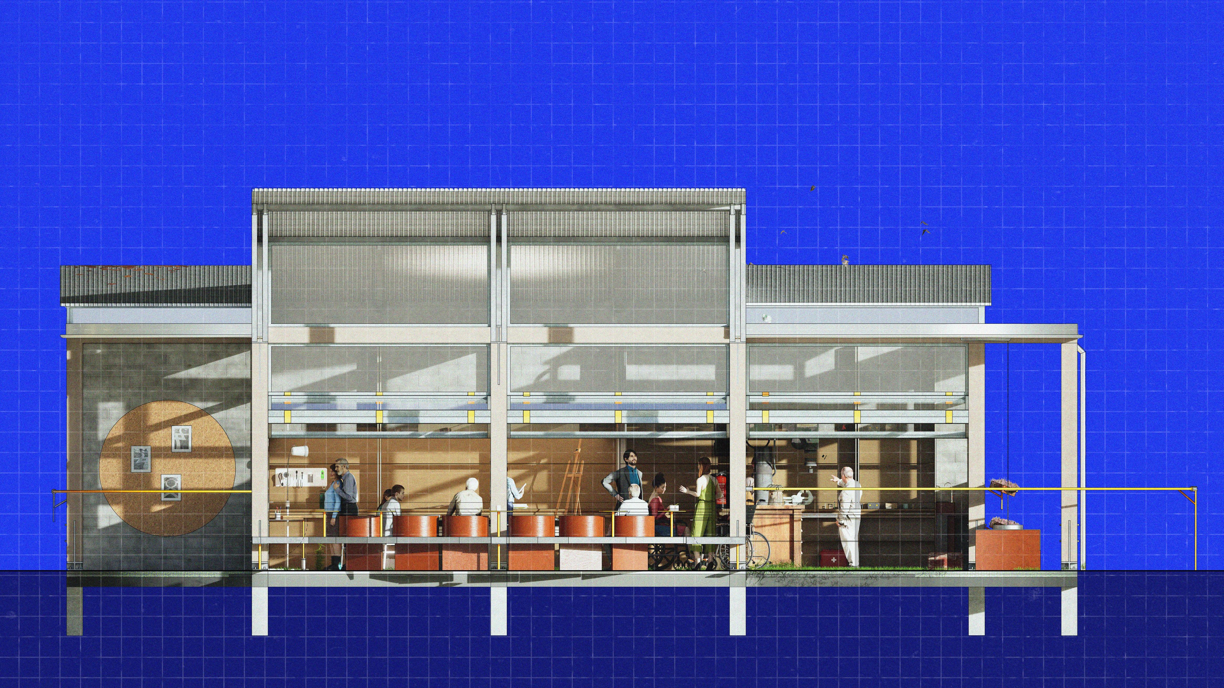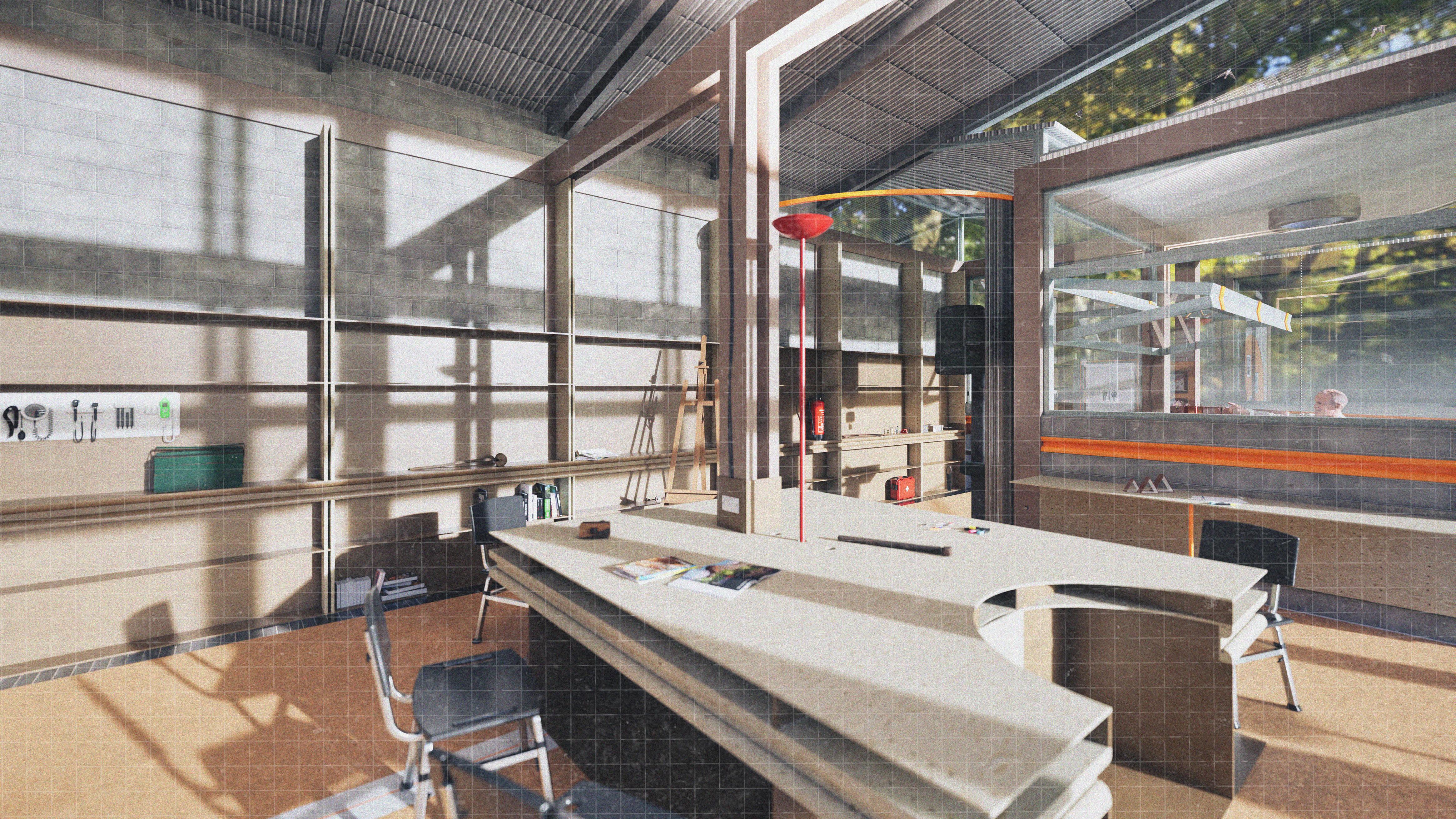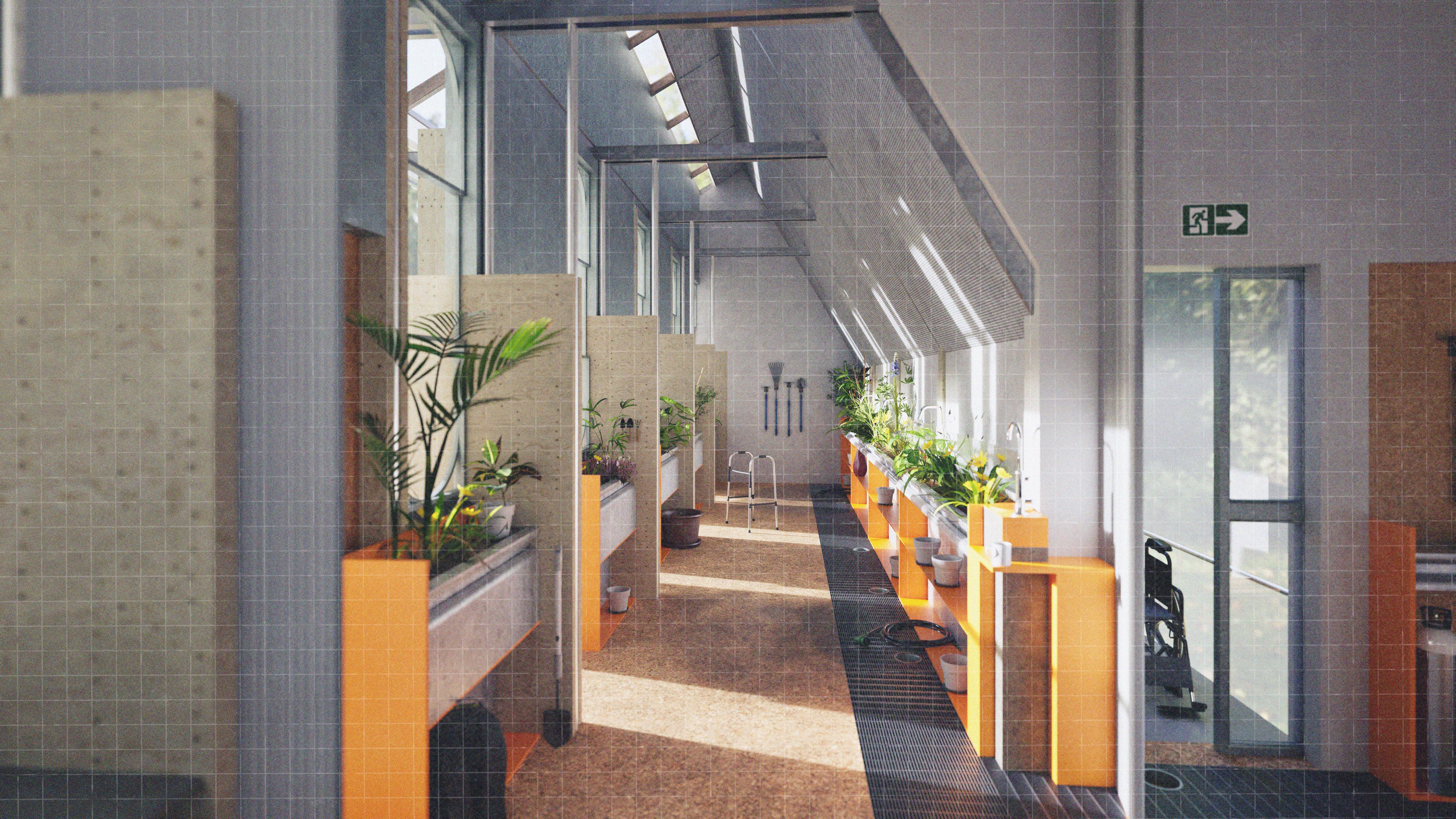 A single-storey Potting shed/ sensory garden pavilion. Gardening offers tactile, olfactory and visual stimulation, which has been shown to reduce agitation in dementia patients. The programme will hybridise a traditional potting shed, a greenhouse and a therapeutic horticulture studio. The intervention will support intergenerational gardening with local schools or families, and will act as a space for teaching and learning. The design will include accessible raised beds, shelter, and tool storage.