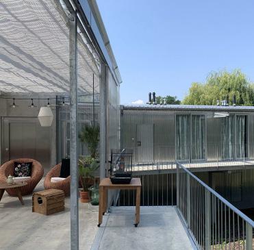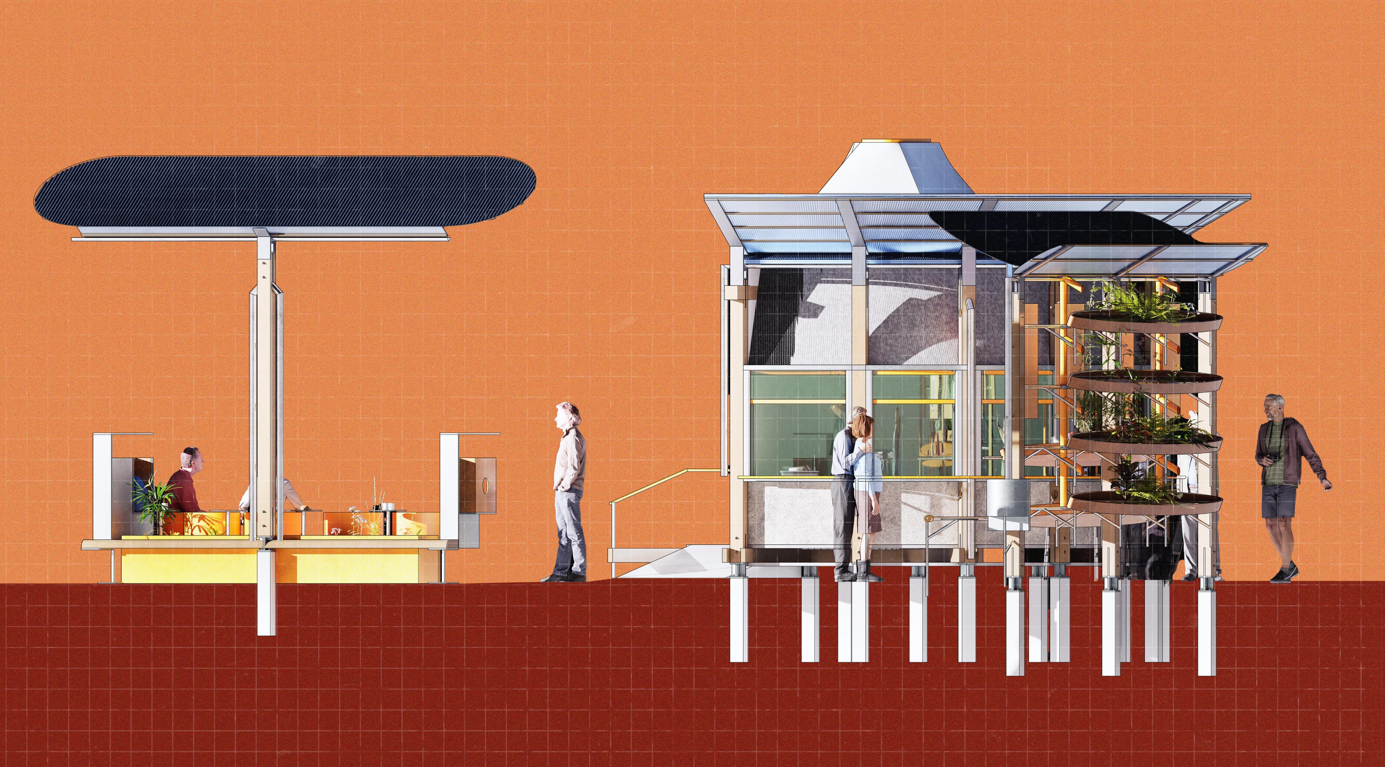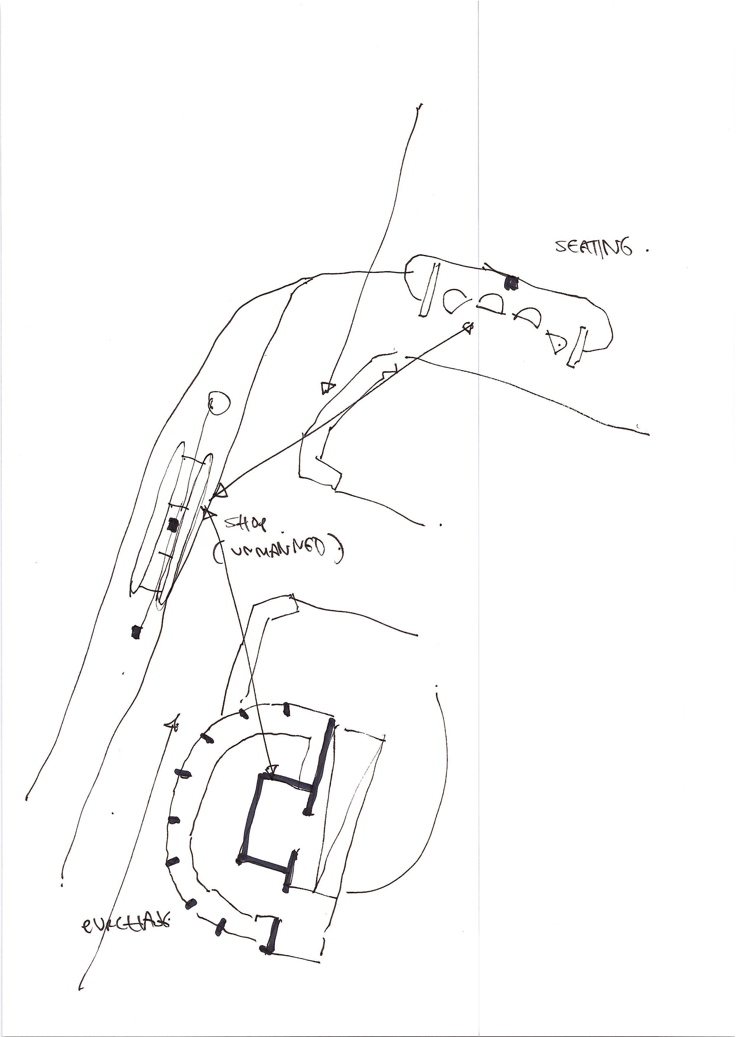Floor grates allow for the accidental overflow of water in case of forgetfulness. The kiosk’s form provides a wide view across the site, increasing visual connection.
