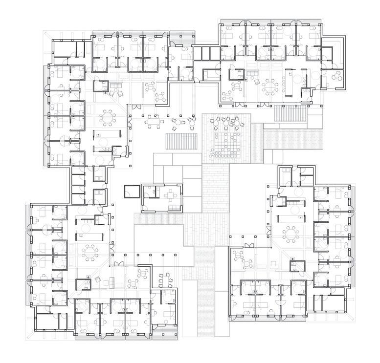 A round floorpan creates a circulation route that discourages disorientation and allows visibility between carers and people with dementia
