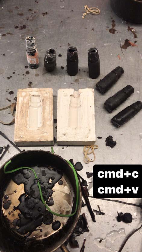 Casting and mold making was an intensive studio that focused on the process of casting aluminum objects. Lessons commenced with plaster mold making to produce wax copies of objects. Those objects were then exchanged with other students in the course. The task was then to wax weld three selected objects together to make a plaster model that would be used to cast molten aluminum. Once casted the objects must be trimmed of their spurs and vents with angle grinder.