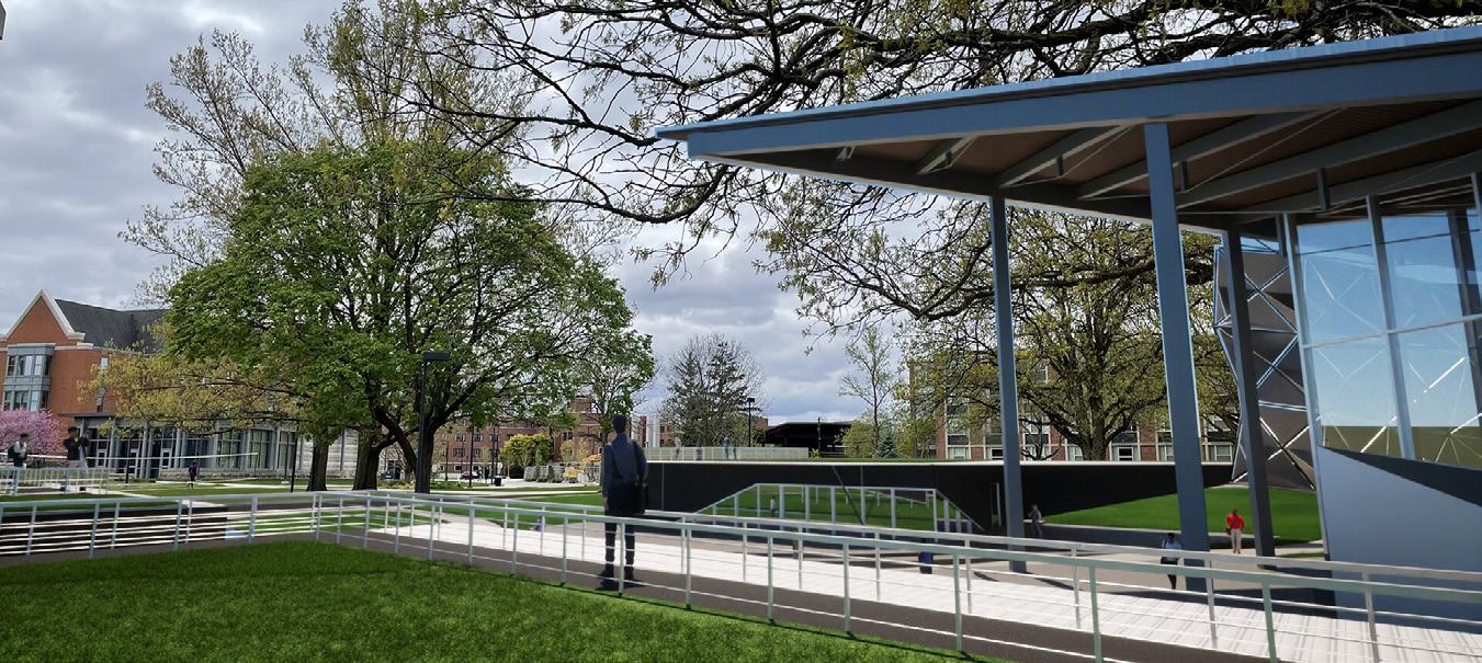 This project revolved around utilizing steel structures in a designed spiritual space. The site I chose for the project was on Ball State’s campus just outside of Noyer Residence Hall. The site has a circular shape with a network of paths and a small creek flowing through the center. I decided to divide up the required spaces among different buildings that were grouped based on their uses. Each of the satelite buildings have an interior space and a green roof to maintain water runoff and pathways for people to walk on.