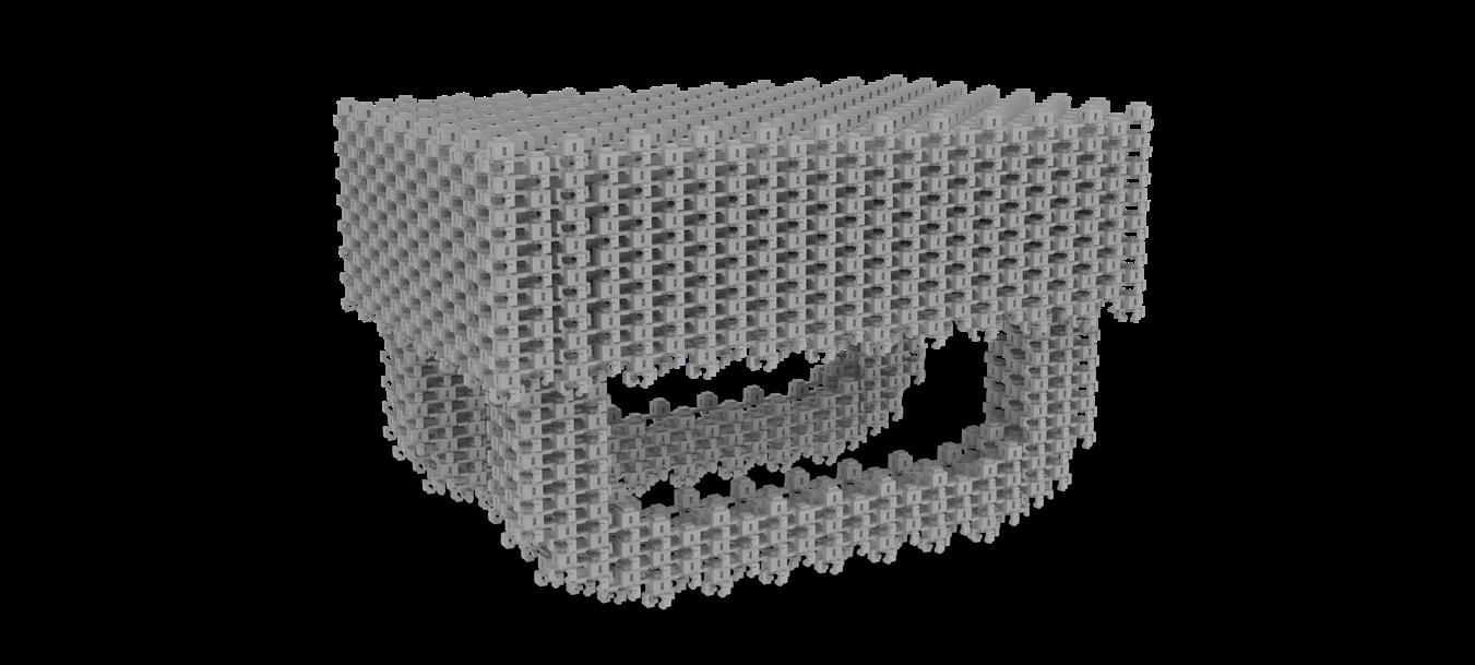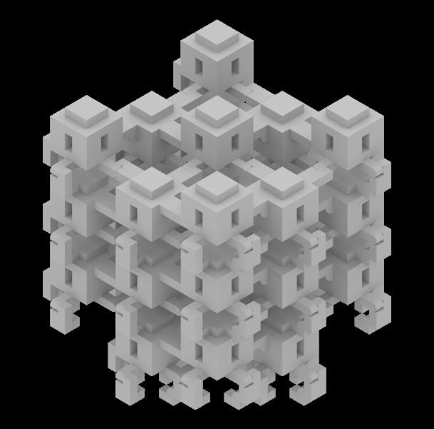 This exploration manifested as many individual machines that, by working together, would operate as one living machine. The living machine was capable of creating works of architecture at any scale, as long as it had the necessary units. Each unit is capable of attaching itself to four other units, assembling themselves into large voxelized structures. These structures and the living machines would be a part of an ever evolving architectural landscape, altering any space that they inhabit or create themselves.