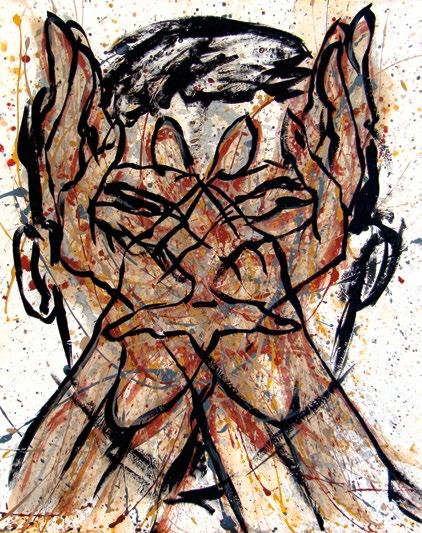 Con casi dos décadas de trayectoria, su práctica se sostiene desde la experimentación y el desaprendizaje. Más que evolucionar, prefiere hablar de involución: soltar certezas, renunciar a la idea de perfección y abrir la obra a múltiples lecturas. En su universo no existen errores; una línea torcida es tan válida como cualquier trazo pulido, porque está cargada de símbolos y posibilidades. Intentar decir algo exacto —emocional o conceptualmente— sería limitar el diálogo con el espectador.