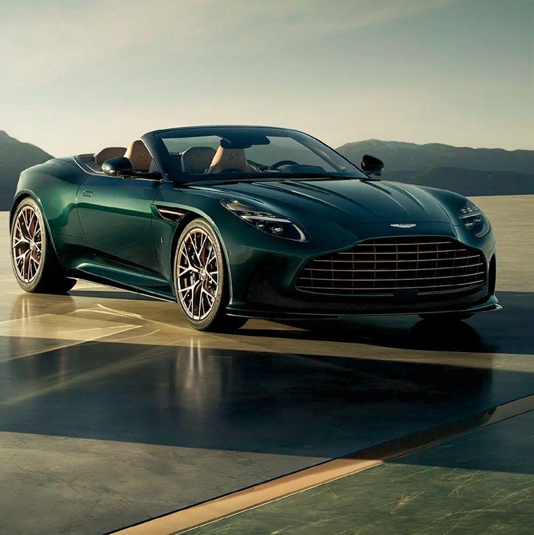 Vanquish o DB12 Volante, no importa. Esta edición especial representa una interpretación audaz del linaje descapotable de Aston Martin, donde un diseño impecable se fusiona con un rendimiento excepcional. El acabado en pintura Q Pentland Green, combinado con la capota Q Westminster Green, aporta una estética refinada, con un contraste sofisticado y profundamente elegante. En el frontal destacan los detalles en bronce