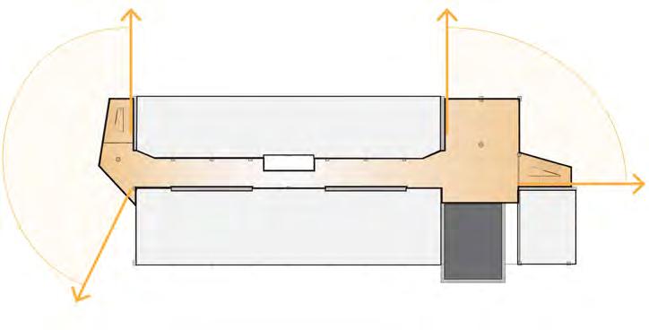 The design of the internal layout revolves around a simple “barbell” organization (left) that creates intuitive wayfinding and prioritizes the student experience in scholarly activity spaces and prominence of the monumental stairs. Scholarly activity spaces and generous circulation spaces are distributed across all floors and at both ends of the building to take advantage of spectacular views of the Box Springs Mountains.