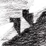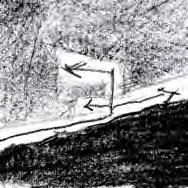 A series of charcoal drawings (right) examining how the building touches the ground, how users move to the site and into the building, and how framed views influence the geometry of the building.