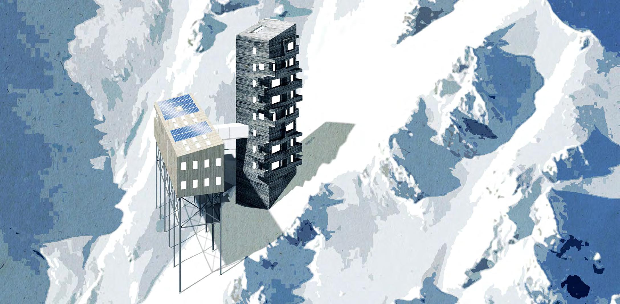 Ponte e Torre is a research station that studies glaciation and archeology in the Otzal Alps, close to where Otzi the iceman was discovered. The facility’s mission is to study past and future climactic conditions, while functioning as a case study of architecture in extreme environments.