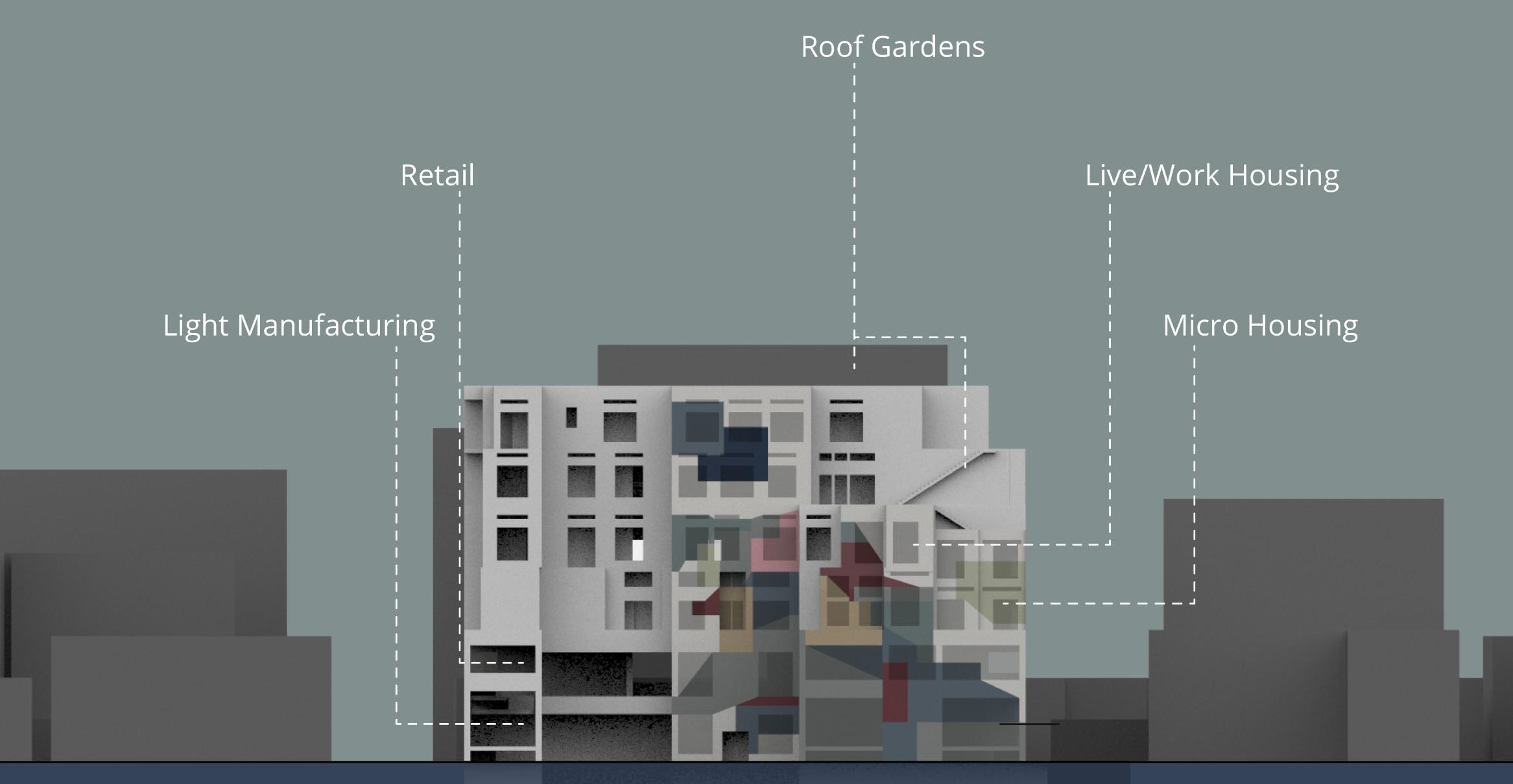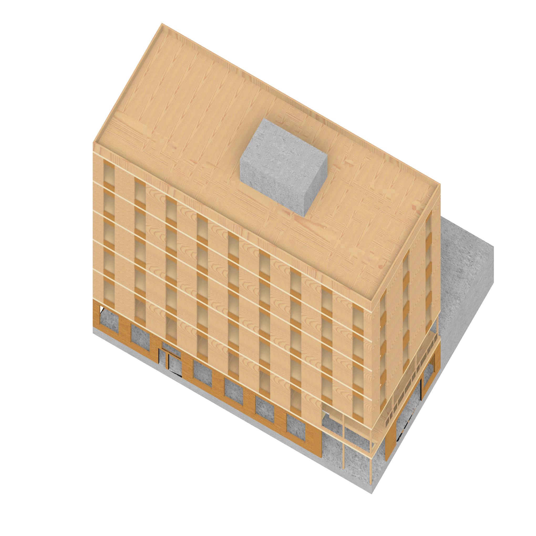 The Sugi Ban Box looks to integrate the systems within a built project into a high performance building with the class integrating building systems and construction tightly into the design process. The Sugi Ban rain screen dictated the structural material of CLT and inspired the staggered wooden ceilings in order to neatly integrate the building’s mechanical systems with the wooden elements. The project includes wall details, structural plans, code compliant egress (for Rhode Island State), and day lighting + PV panel calculations.