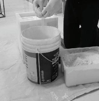 Makeamoldoutoffoam; thiscastneededapiece thatwas24”x24”x3”big Getadisposablecontainer andutensiltomixthecast Laydownnewsprintor otherscrappaperto protectyourworkspace