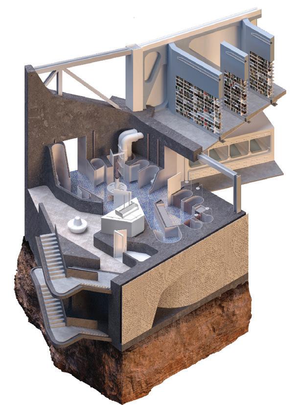 Theoveralldesignisfora mediathequeinIstanbul, Turkey.Scholars,professors, andstudentsliveandworkfor dayswithinthisbuilding,soliving spacesweredesignedalongside workingspacesandarchives.“Weusedtheprogressionofideasin program,form,andmaterialitytodevelop projectsthatdealwiththeideaof estrangementindifferentscalesand contextswiththegoalof re-interptetingthefamiliar”