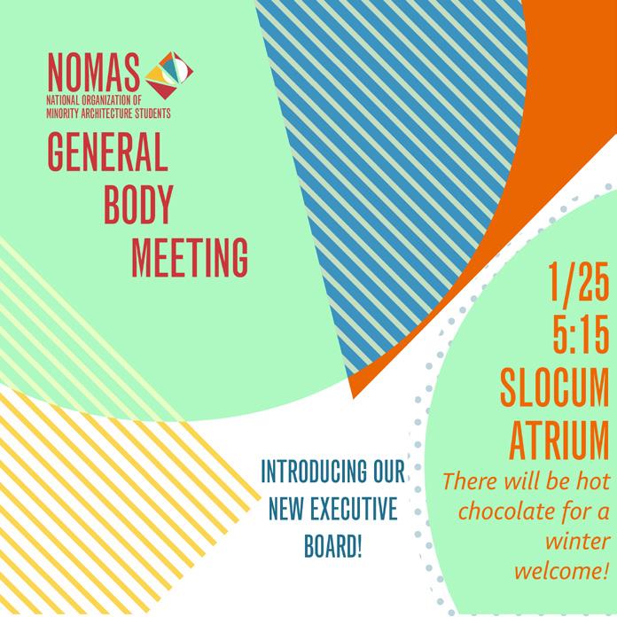 For two years, I was one of the Communications Chairs of Syracuse University’s chapter of the National Organization of Minority Architecture Students. I created several promotional posters for NOMAS events and opportunities to be posted digitally on Instagram and physically throughout the school. The designs had to follow some design guidelines to fit within the Syracuse NOMAS brand, but the elements and geometries could be reorganized however I wished.