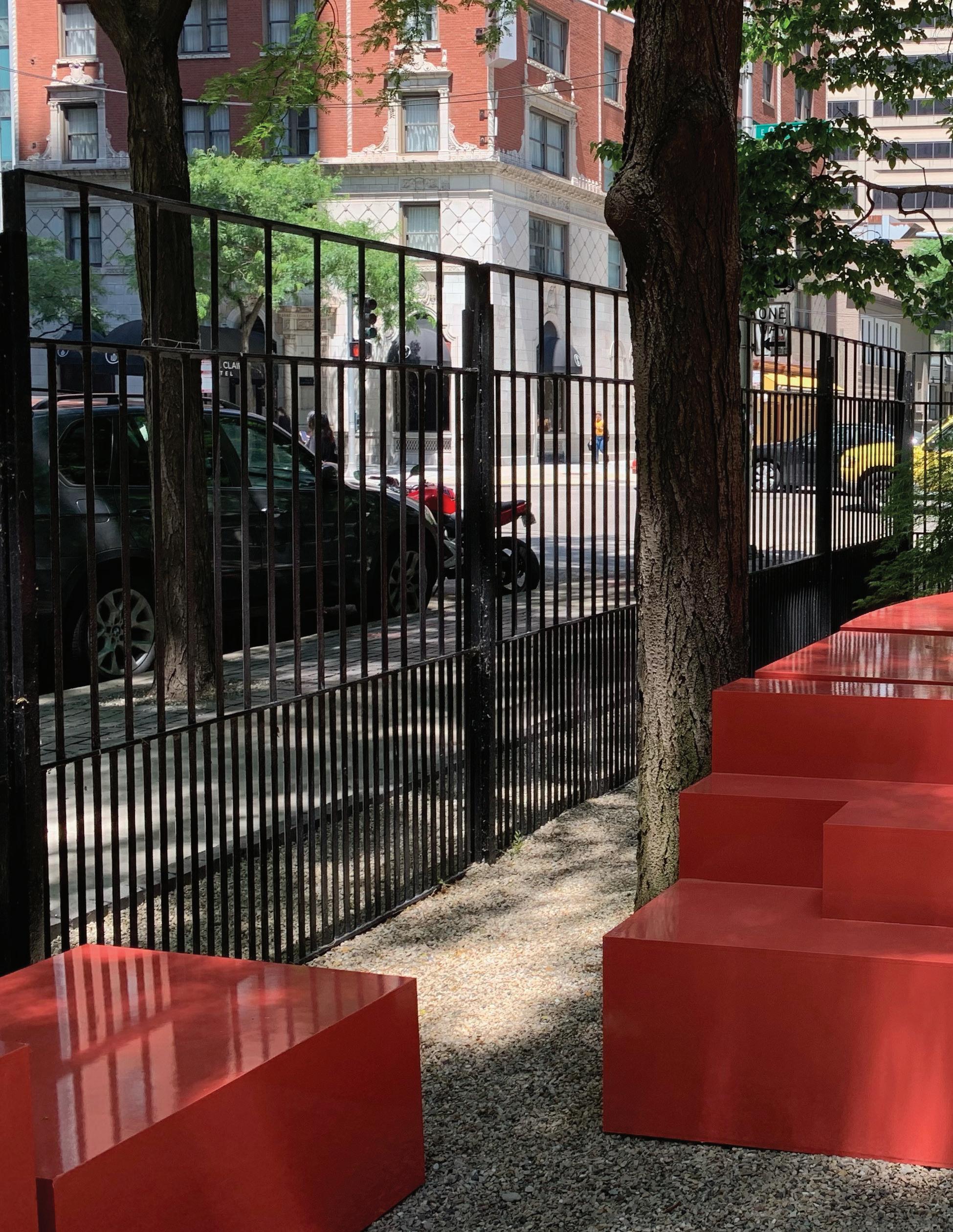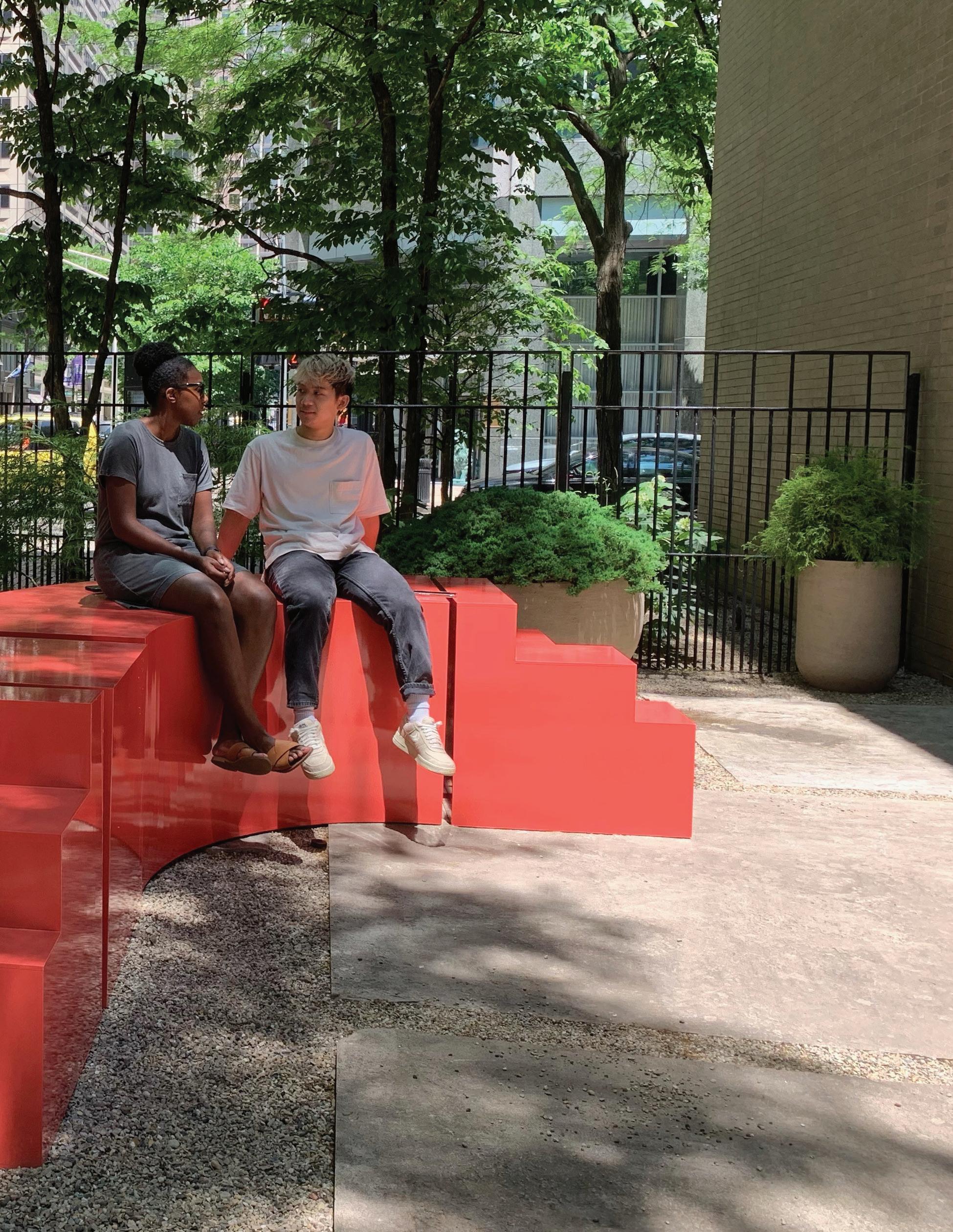 In this time of tentative gatherings, Chicago Mobile Makers designed configurable furniture for The Arts Club of Chicago garden. Employing modular, geometric forms in bright color, they transform the tranquil setting into a playful, interactive space. Each practical, movable shape is designed to be used independently or in combination with others to make individual seating, play-form, or bench. Throughout the coming months, the Arts Club will host outdoor sound and performance, as well as open hours for meditation or social gathering.
