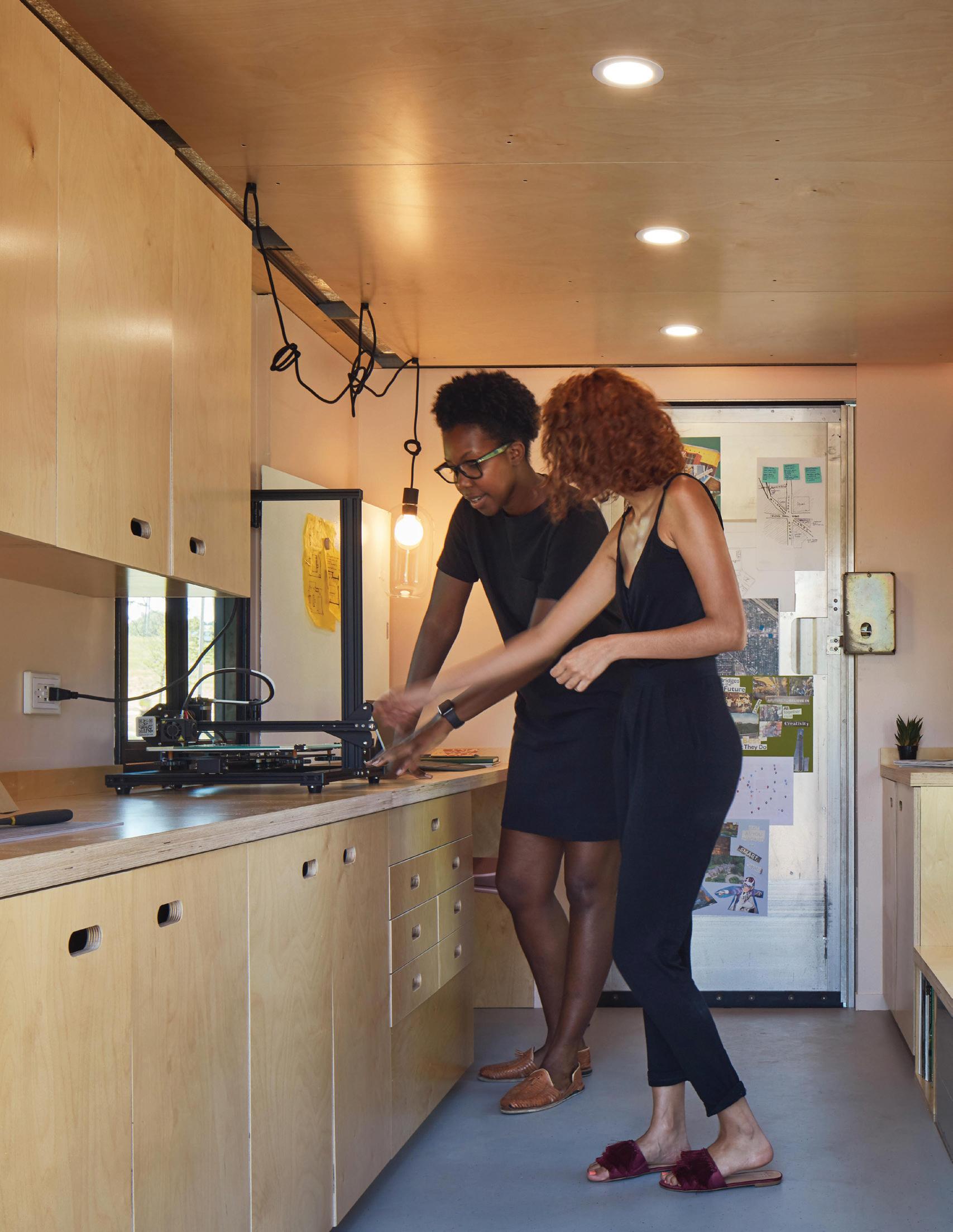 The design of the Mobile Makerspace allows students to spill outside and activate unused space. Design, digital fabrication, and building workshops are able to be held anywhere - from an empty lot to a parking lot to a summer street festival. Youth will be able to design and build change in their own neighborhoods with their own hands.
