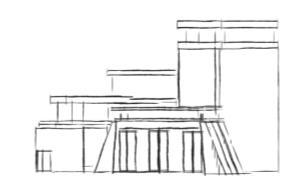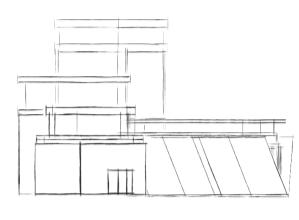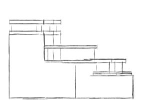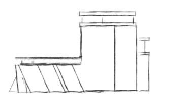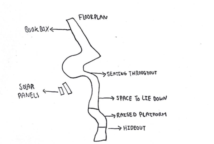In the drawing above I have sketched out a potential interior to go with my exterior SketchUp design, adding a café space with outdoor green seating To develop and interlace my ideas even further I have created a SketchUp using the same components inspired by different ideas generated from my secondary research such as the curvy beach house apartments and the Japanese wave paintings.