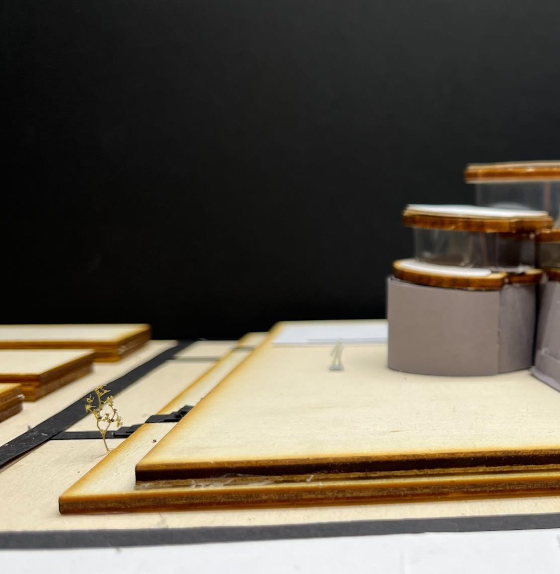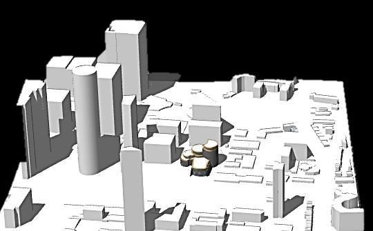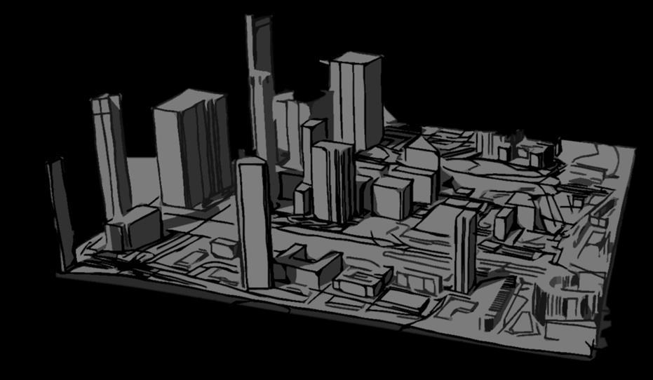 The raised platforms on the left hand side are representatives for the skyscrapers that surround my site, during the designing of the landscape I decided that I wanted my model to appear on an elevated platform for visually aesthetic purposes