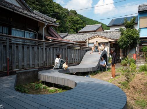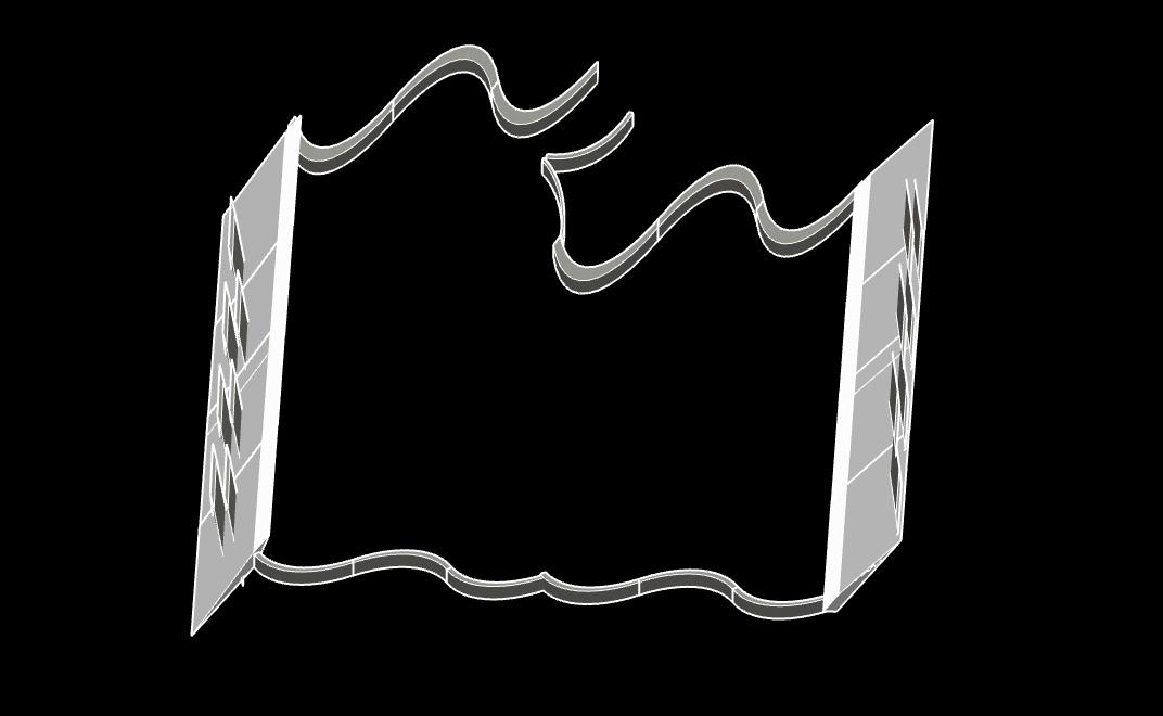 Wall features inspired by wave curvature, sticks out from the vertical wall