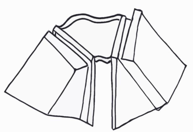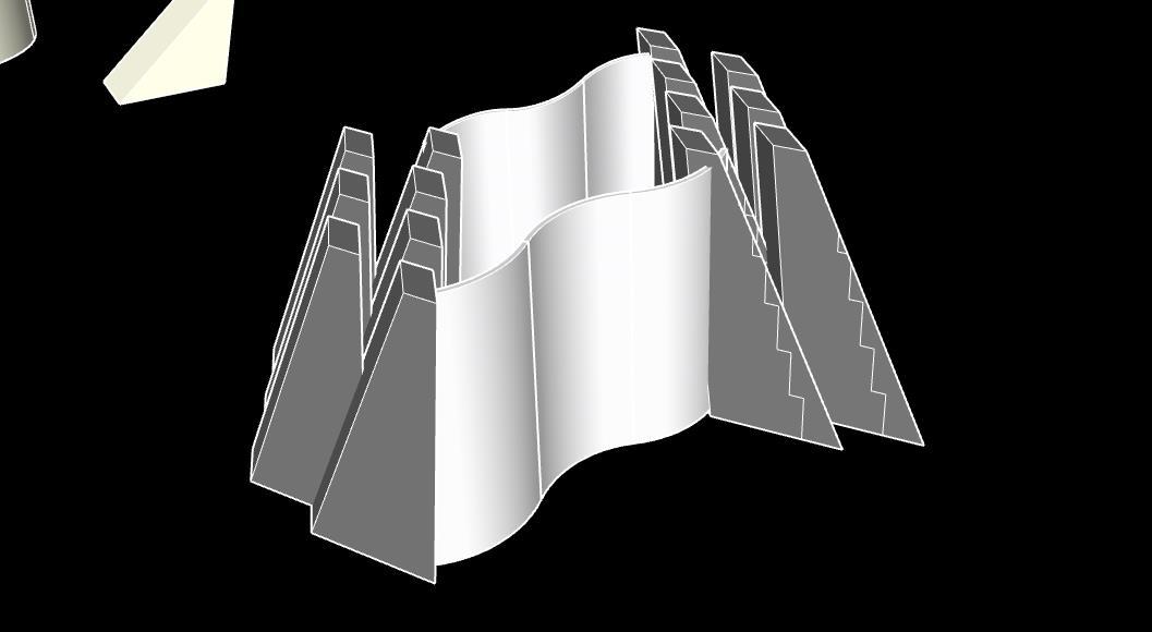 During the creation of my SketchUp model, I encountered some troubles with how to merge both my curve and angular ideas together without the model looking peculiar. I used the curved model and the angular model shown below to create this idea.