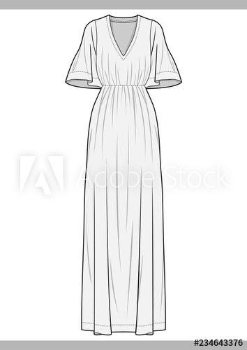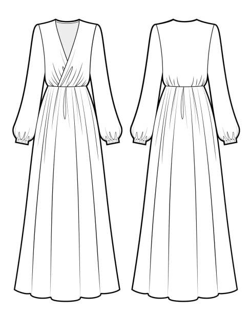 /vector/folded-maxi-silk-dress-fashion-sketch-romantic-style-front-back-view-gm1330976099-414249039?phrase=long% 20dress%20drawing&