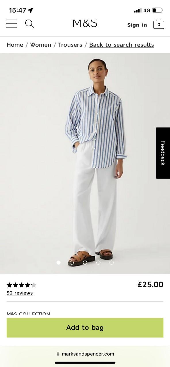 Linen is a very summery and comfortable fabric which is very suited to the core M&S consumer who is more interested in quality and comfort than the latest trends for the S/S24 range. The prices of the Next trouser and M&S trouser is the exact same setting a strong price point for the standard linen trousers, however the Tommy Hilfiger trouser found in John Lewis is a much higher price due to premium branding and fabric being 100% linen whereas the other two products have 55% linen, 45% viscose bringing the price down.