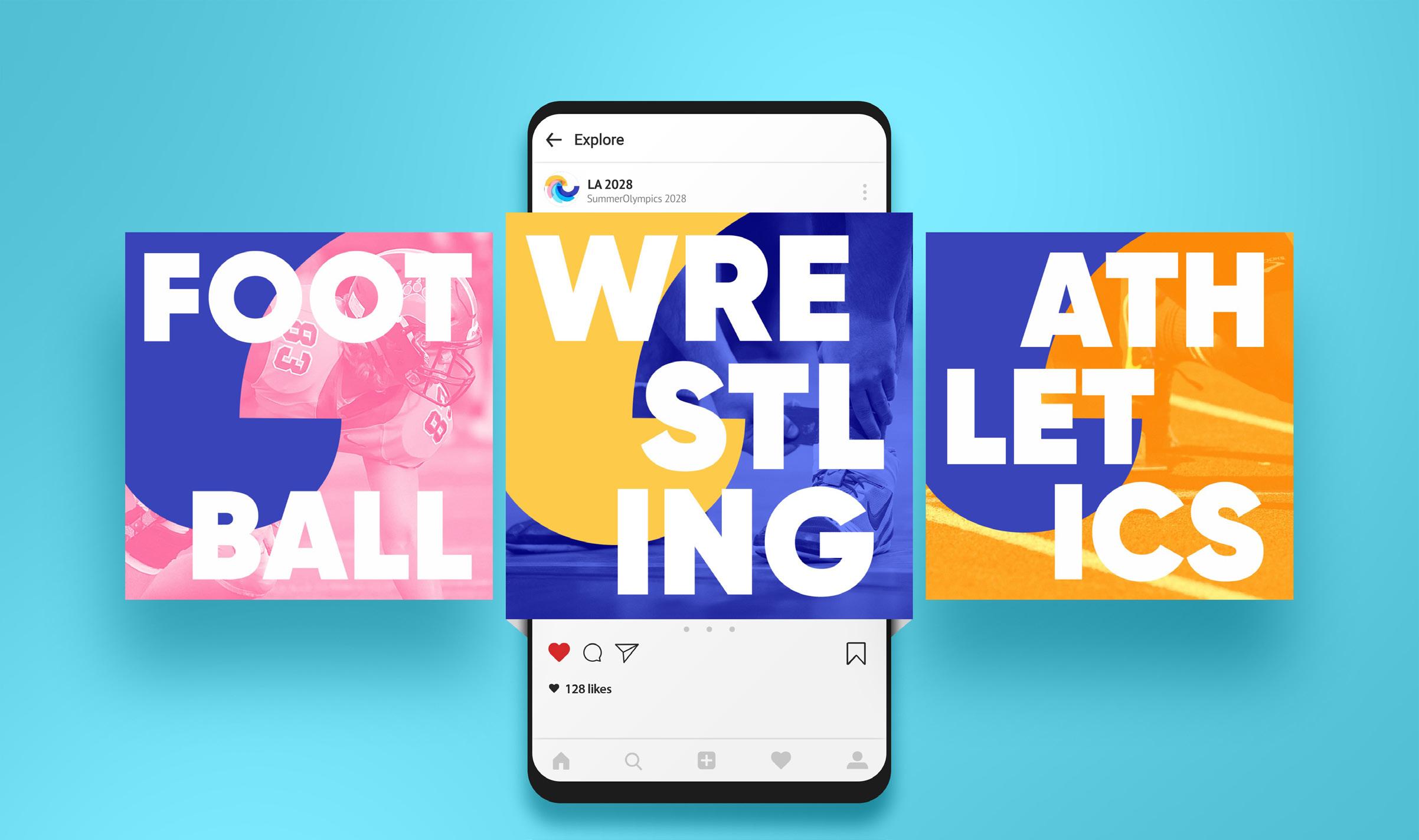 The promotional campaign on Instagram includes a series of posts with all the disciplines in the Olympic programme. The posts use the brand imagery masked by an element of the logo . The names of the different disciplines are